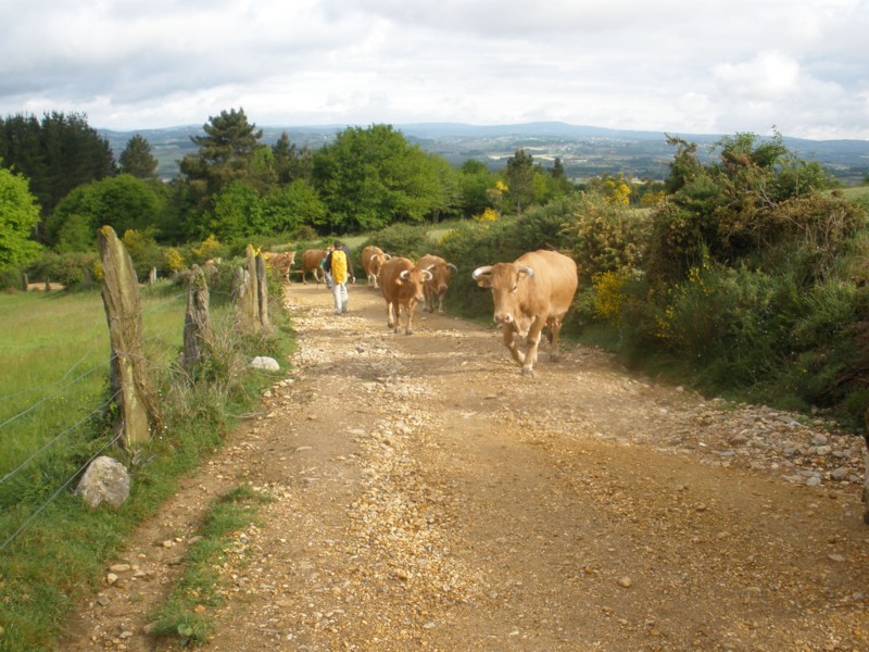 Llevo los pies cocidos. La salida de Portomarín, con otro Miura de subida,