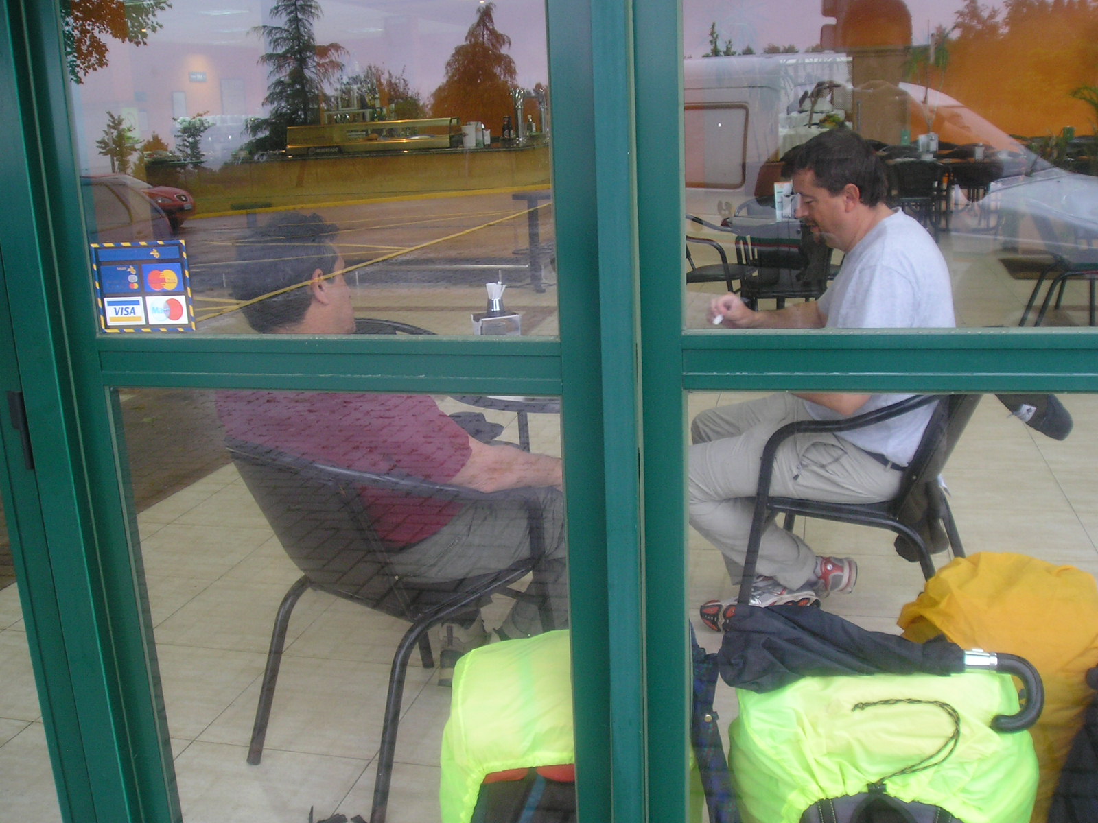 el tiempo está desapacible, lloviendo, van saliendo los peregrinos hacia