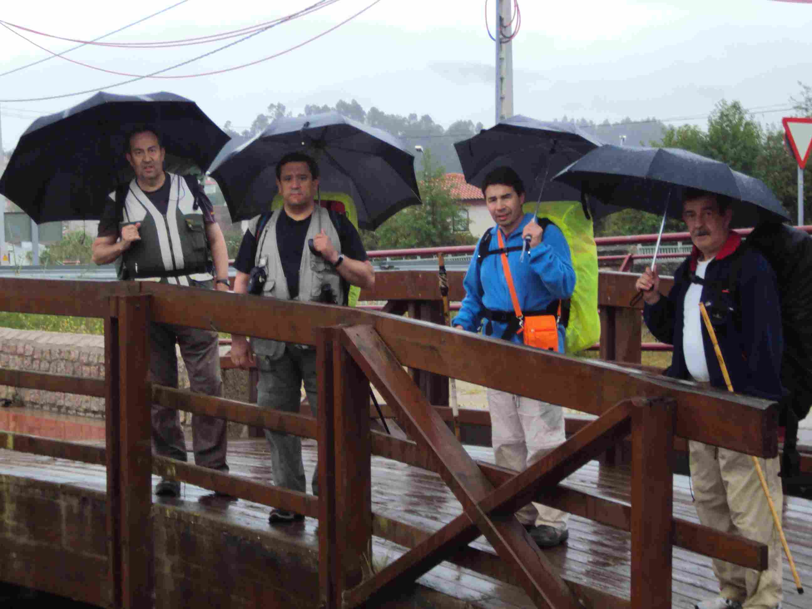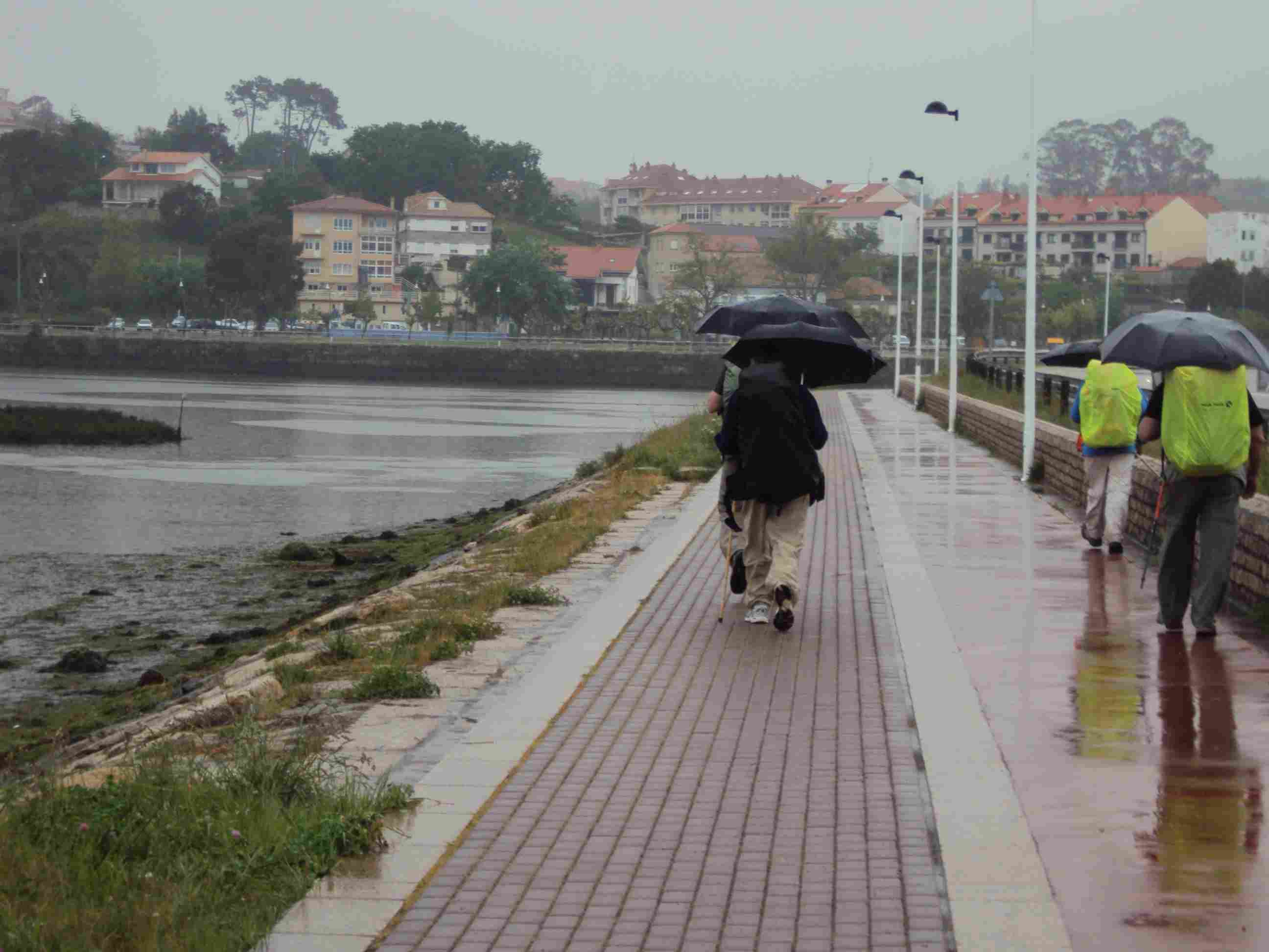 los paraguas. Mientras nos acercamos al puente de A Ramallosa, Baiona va