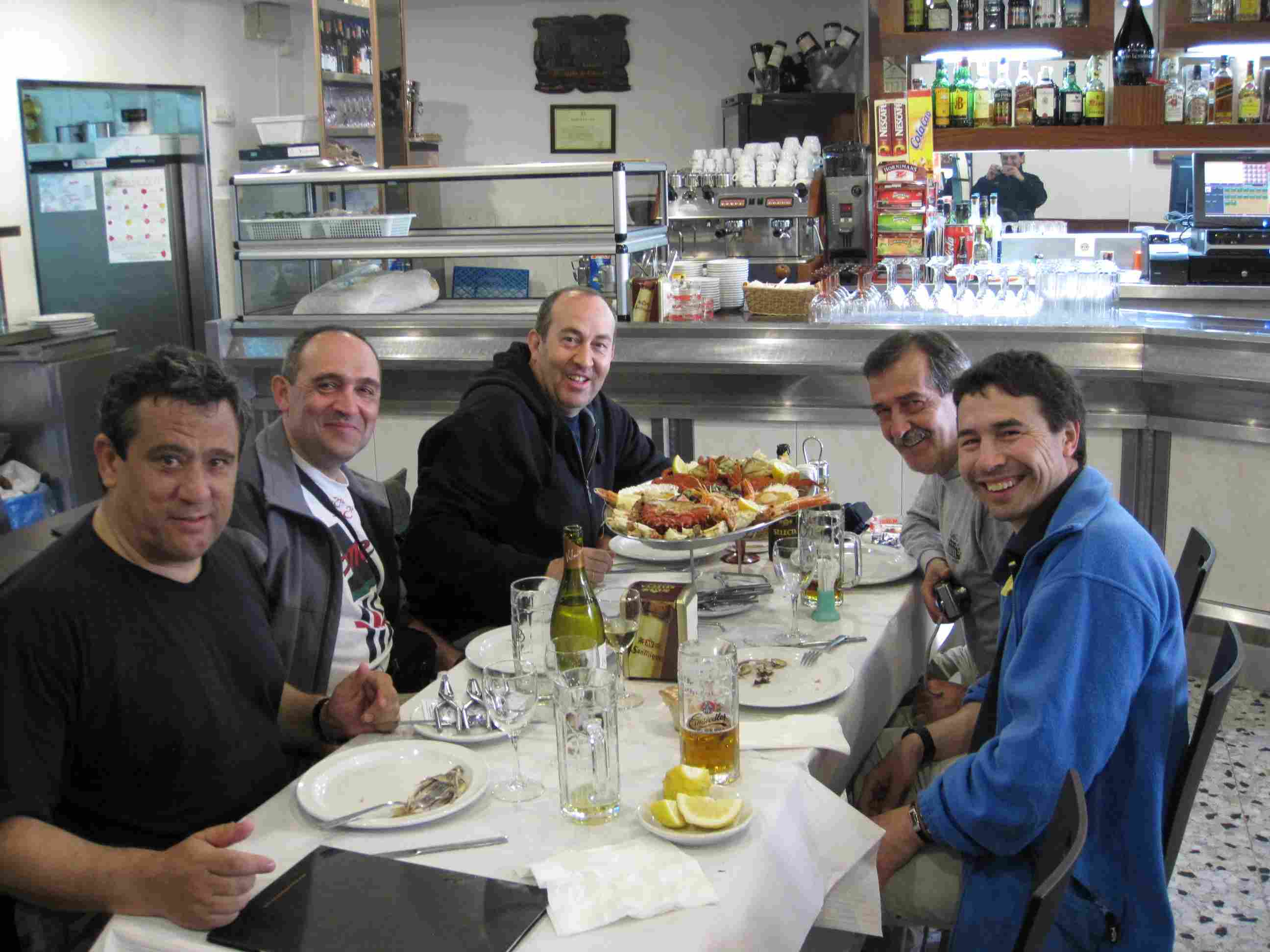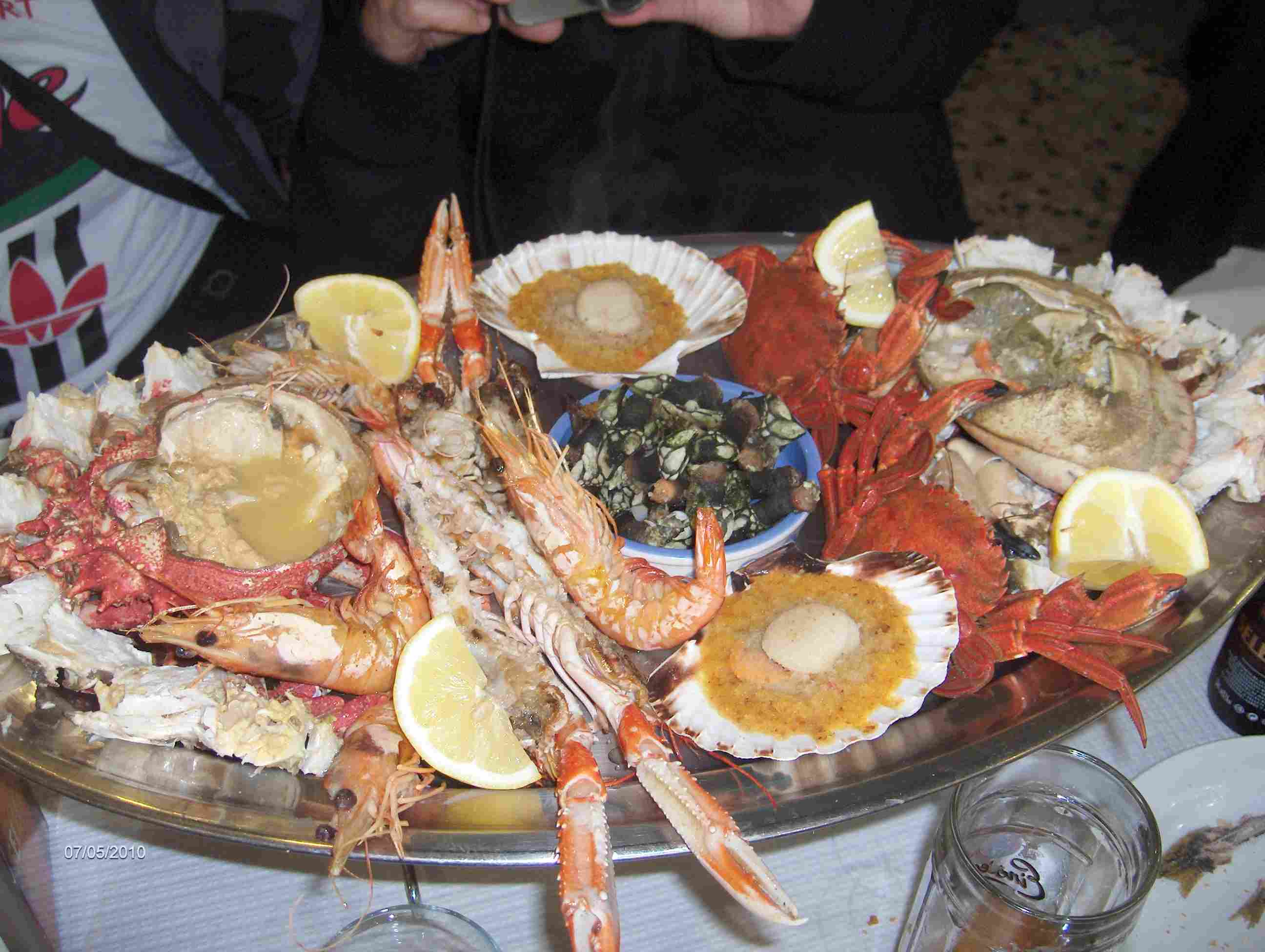 acompañamos a la mesa y pedimos una buena mariscada, una parrillada de pescado