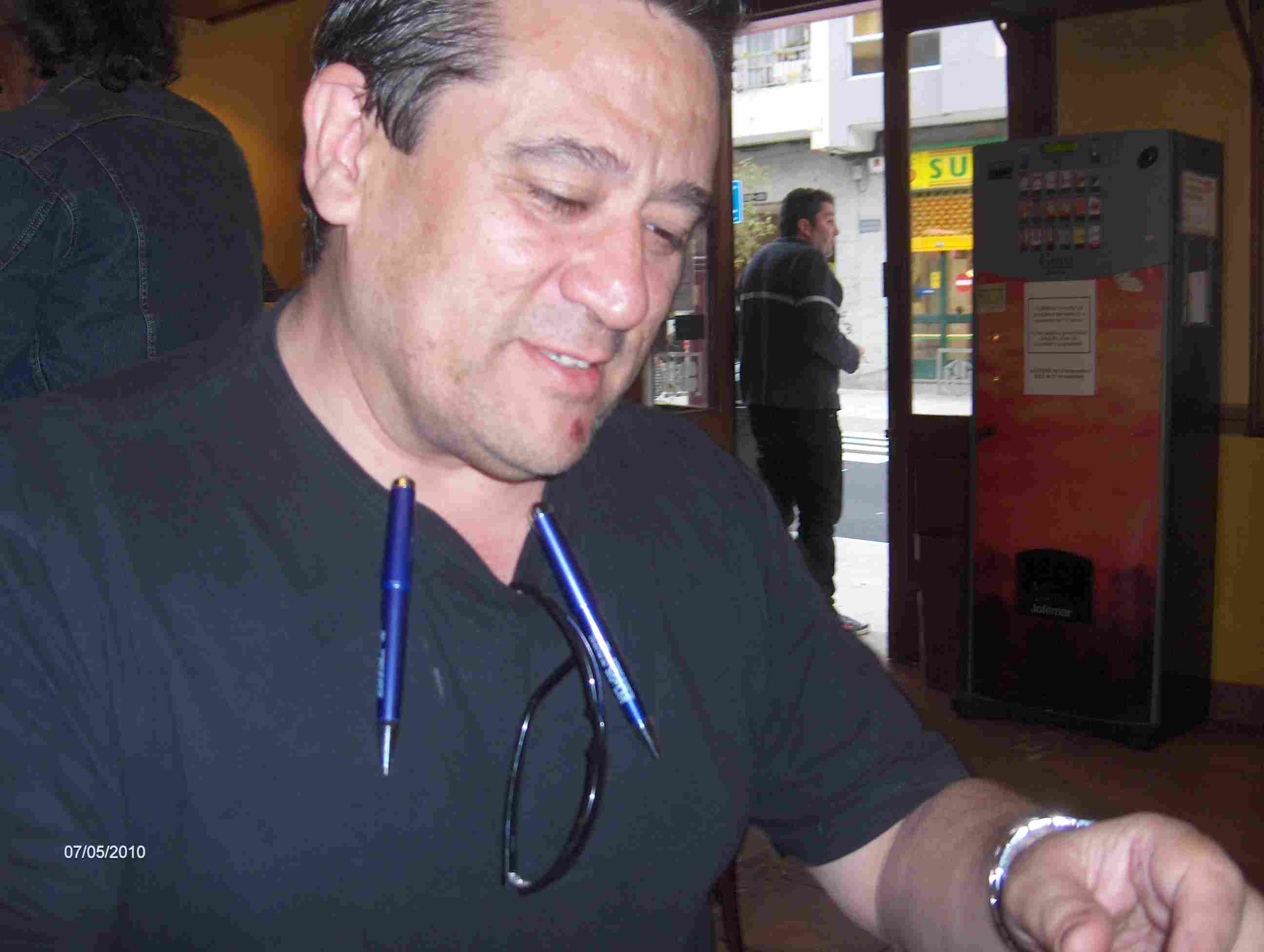 varios de propaganda. Se los doy a Paco que bromea con ellos.