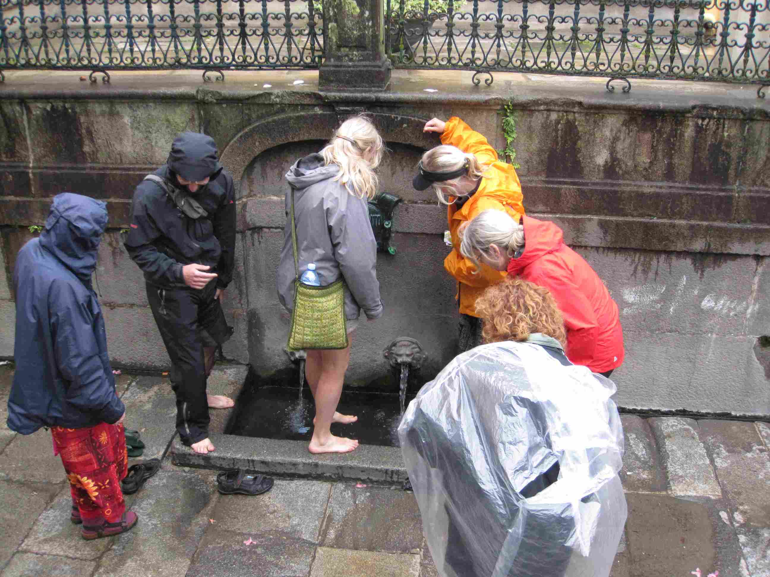 albergue. En el camino encontramos la fuente termal de Caldas de Reis, fuente