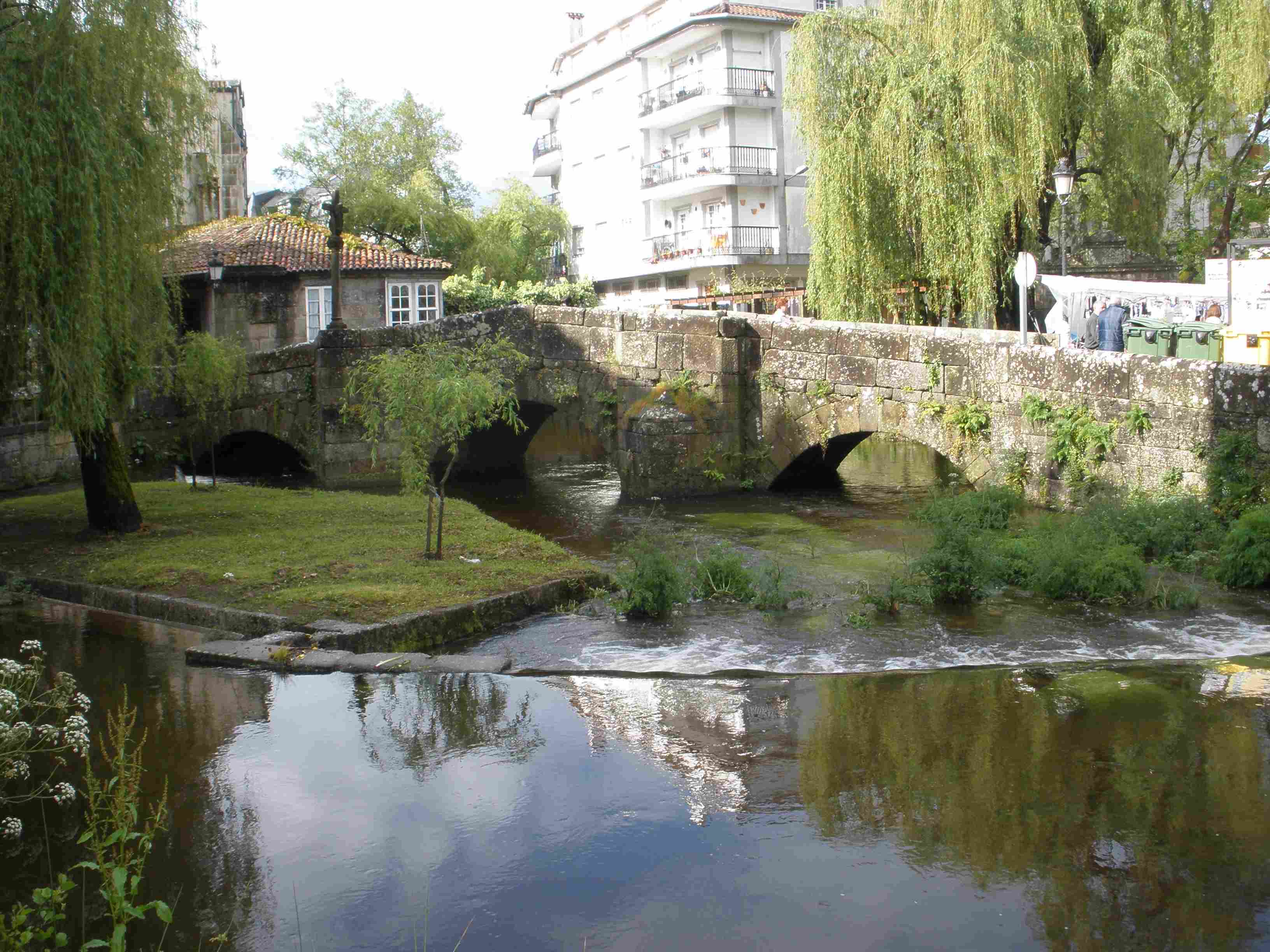 Tras cruzar el puente, el camino bordea el río Sar. Padrón se encuentra al