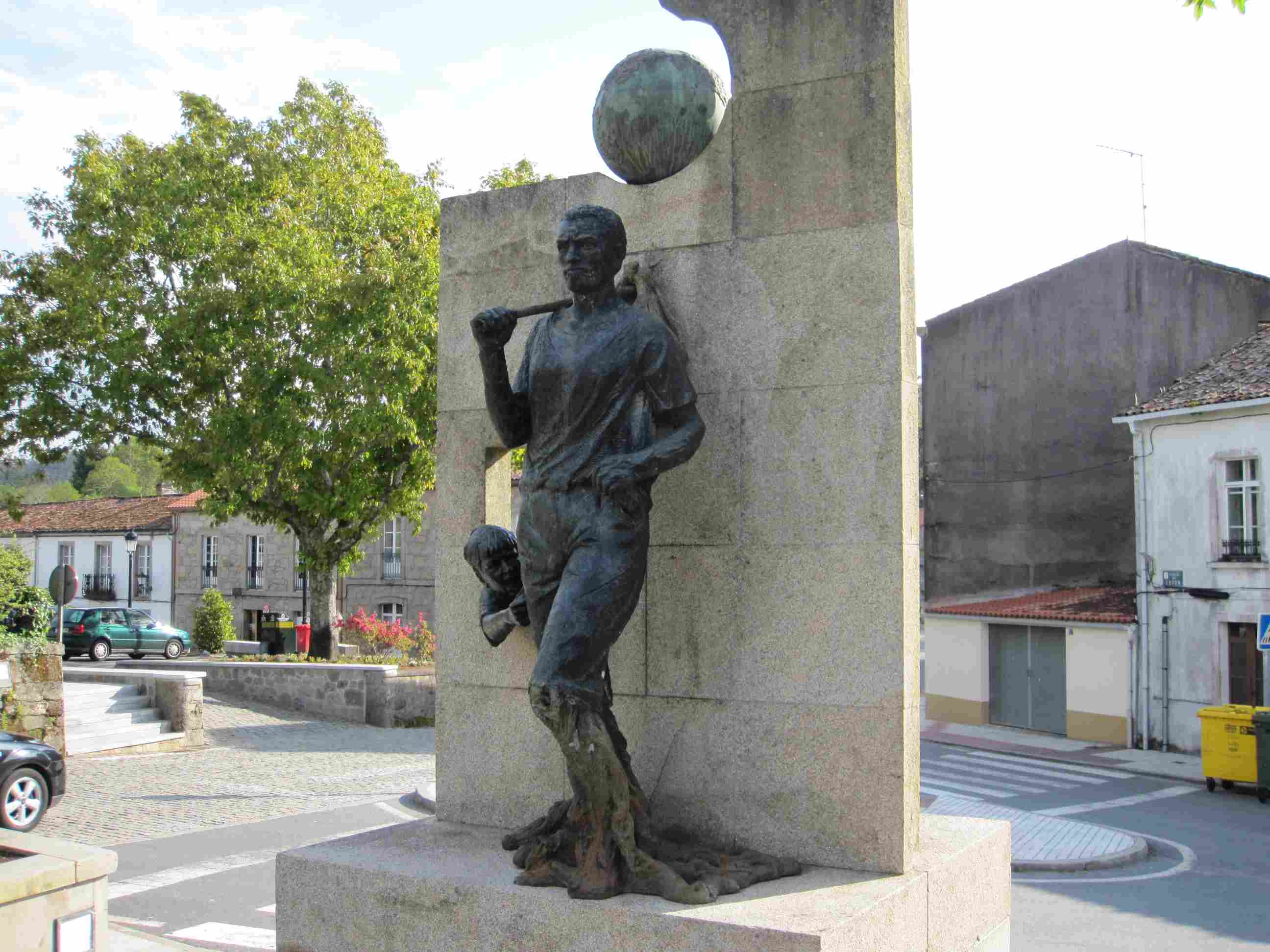 En la plaza del Pazo podemos observar un sobrecogedor monumento al emigrante