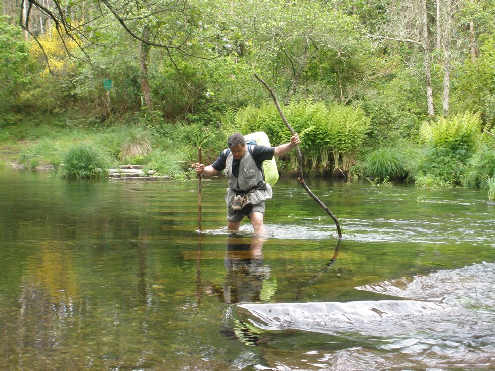 bastones, atravesé el río con el único percance de calarme hasta casi las