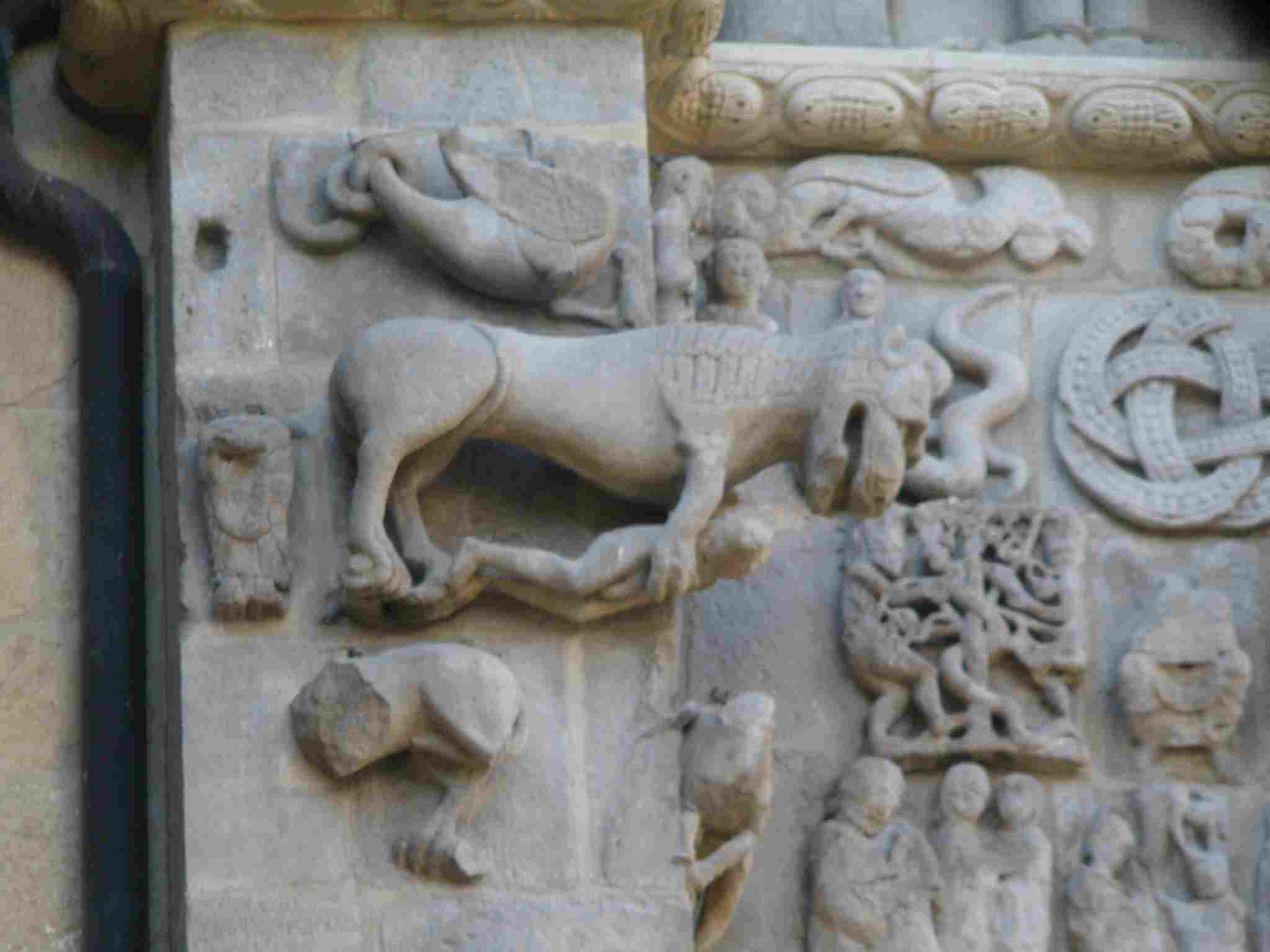 románico, gótico y bizantino. La portada, neorománica contiene en su tímpano los nombres de los distintos lugares de