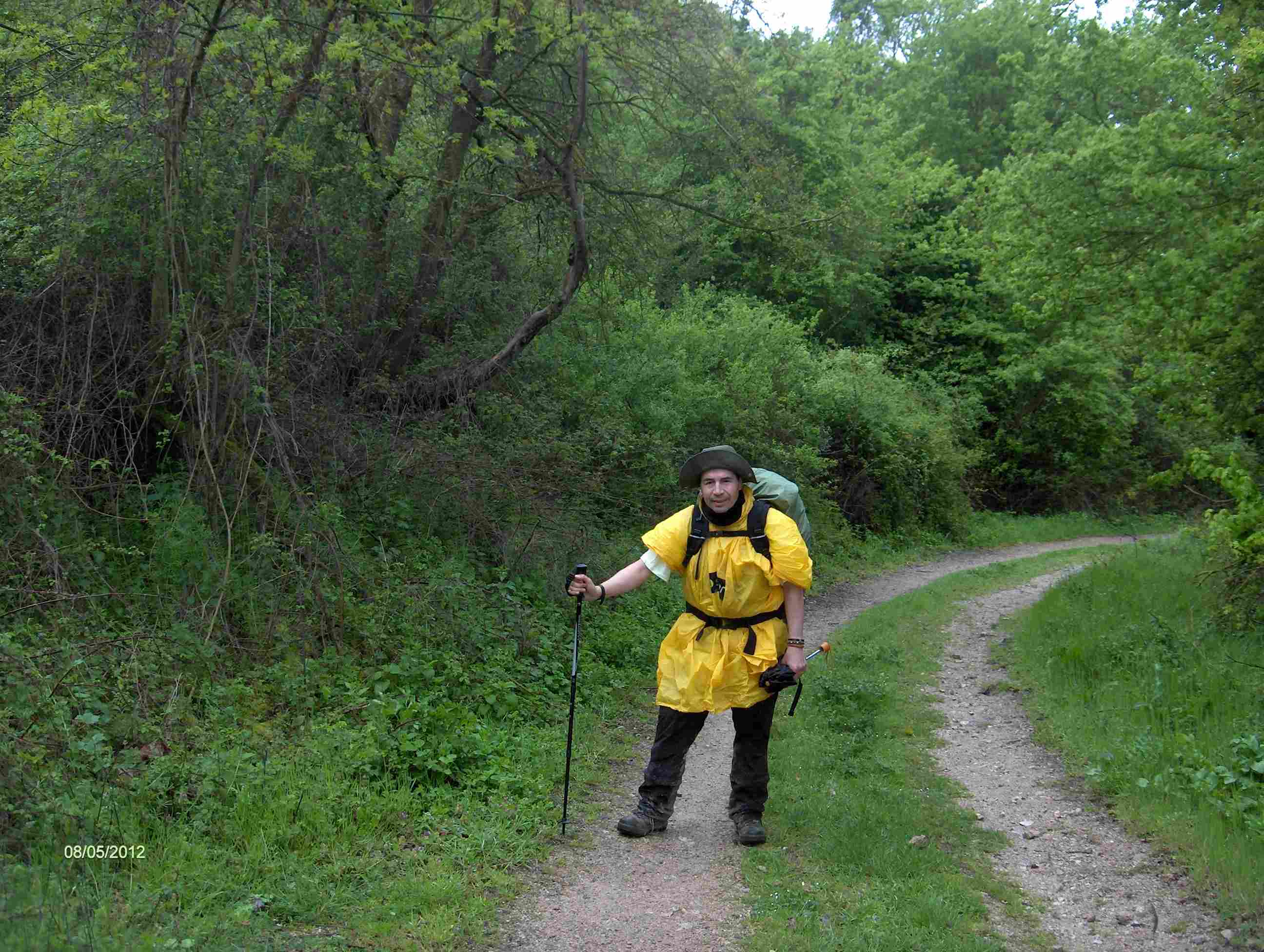 Continuamos el Camino con los impermeables puestos y los paraguas abiertos. La pista se convierte en una senda estrecha que,