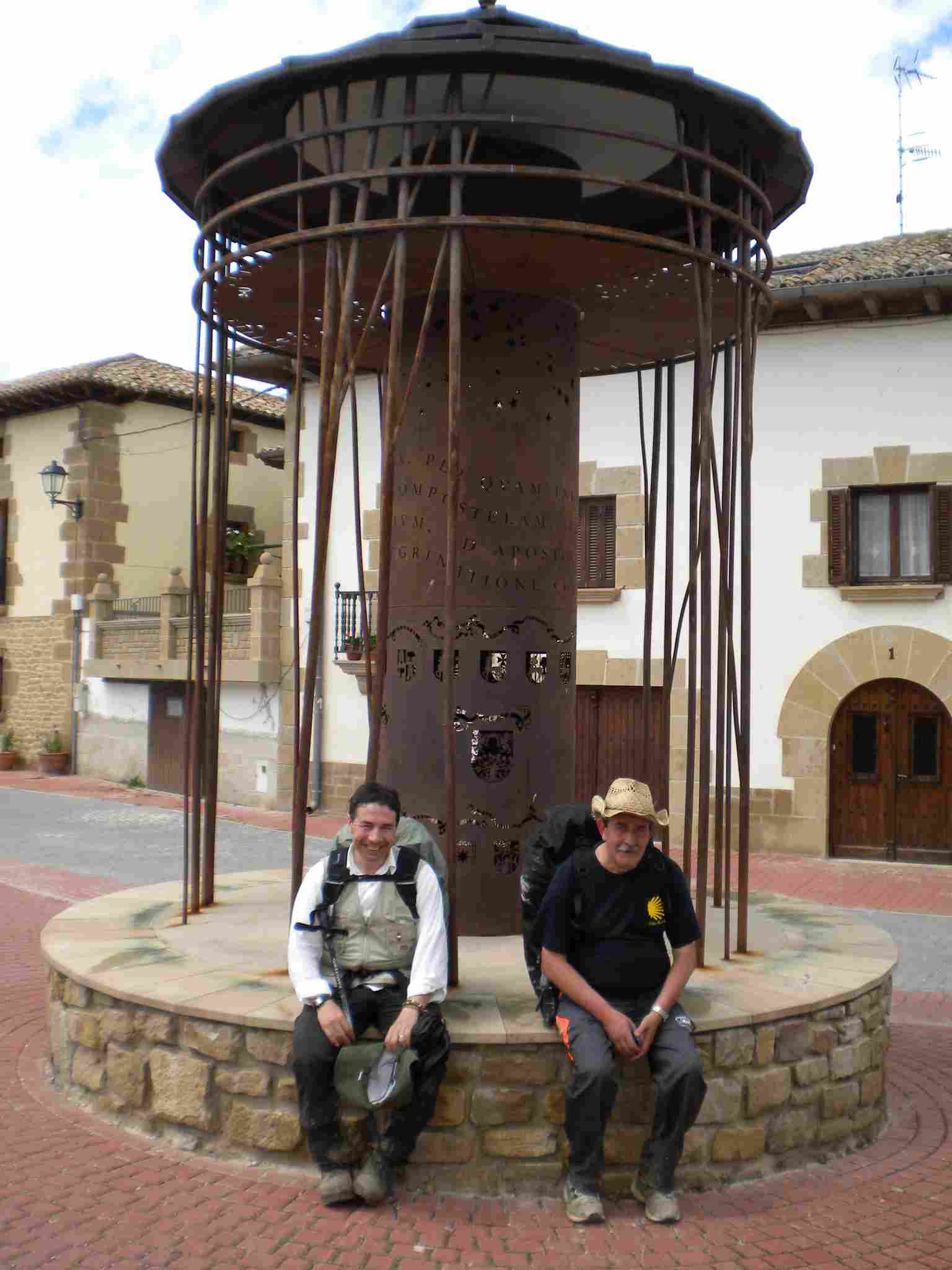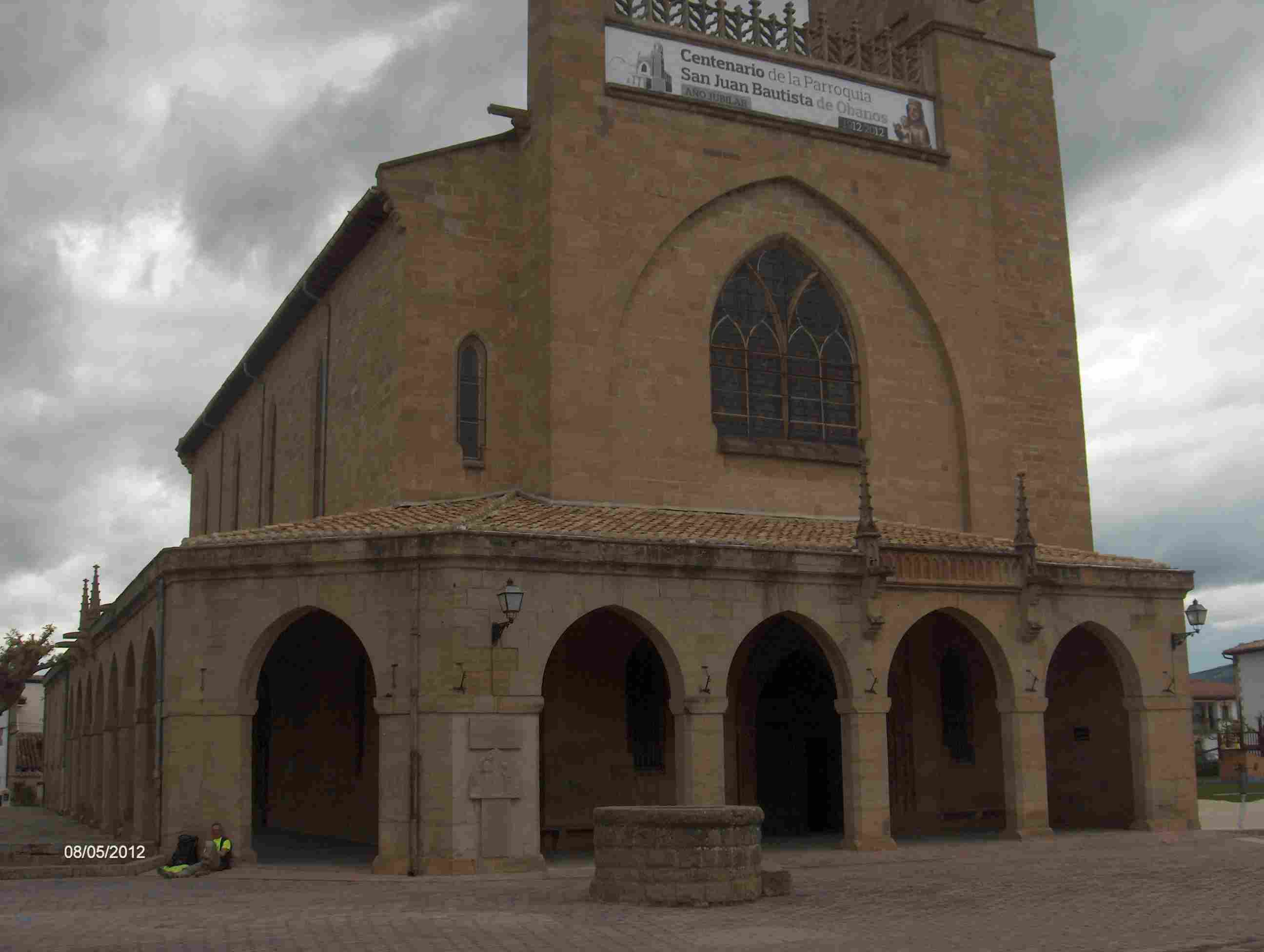 Ya en Obanos, caminamos tras Chema, que se ha adelantado un poco. Nos espera sentado al pie de la Iglesia de San Juan