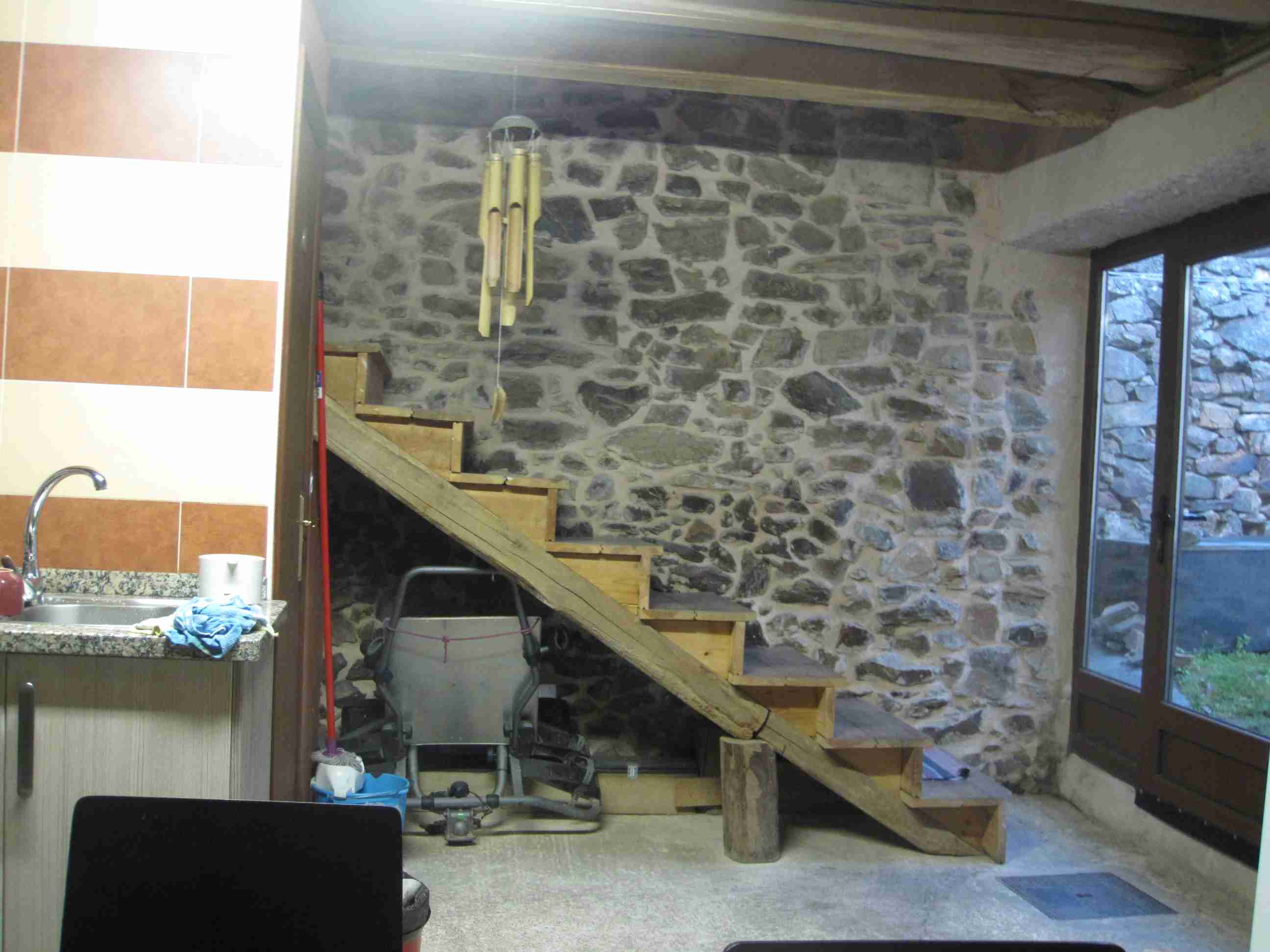 Escalera rústica hasta las literas del piso alto