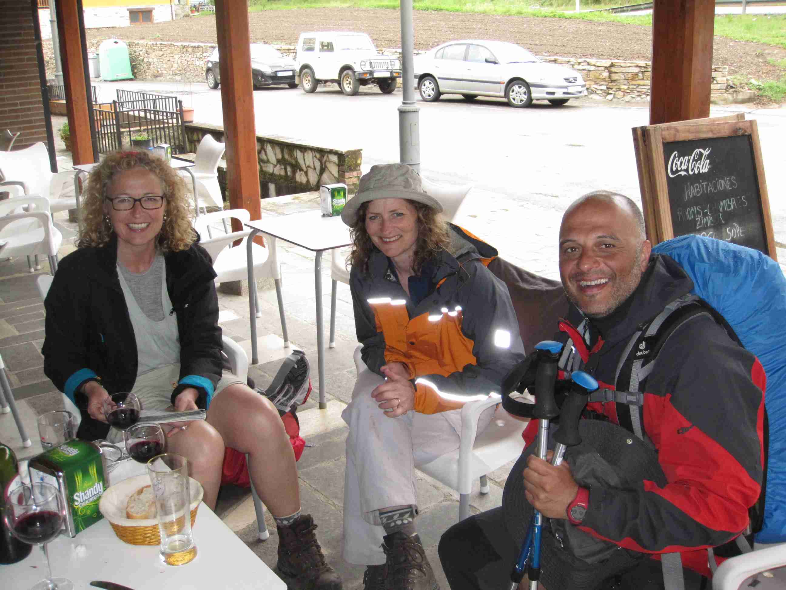 de 1 km ya se lo había quitado, empapado por dentro, ya que la salida de Cacabelos es cuesta arriba. Parada en un bar