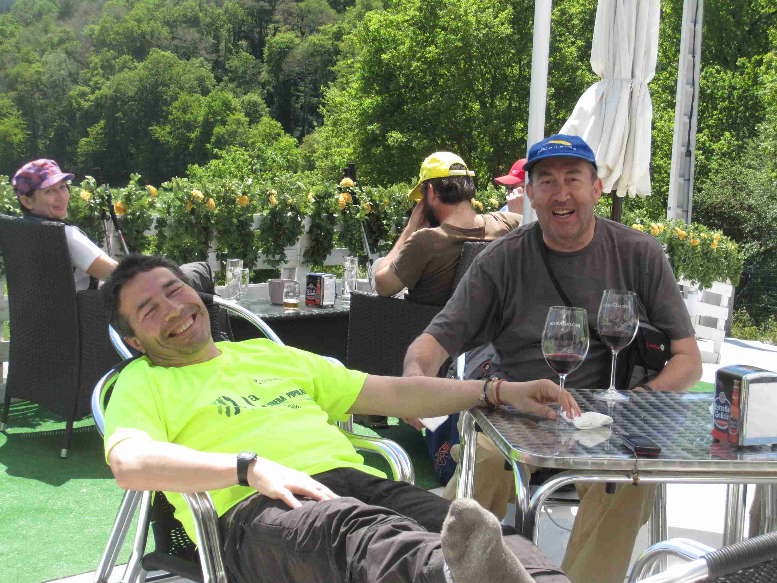 Todos los peregrinos sentados al sol en su terraza, incluso el matrimonio australiano, que estaban con otra peregrina