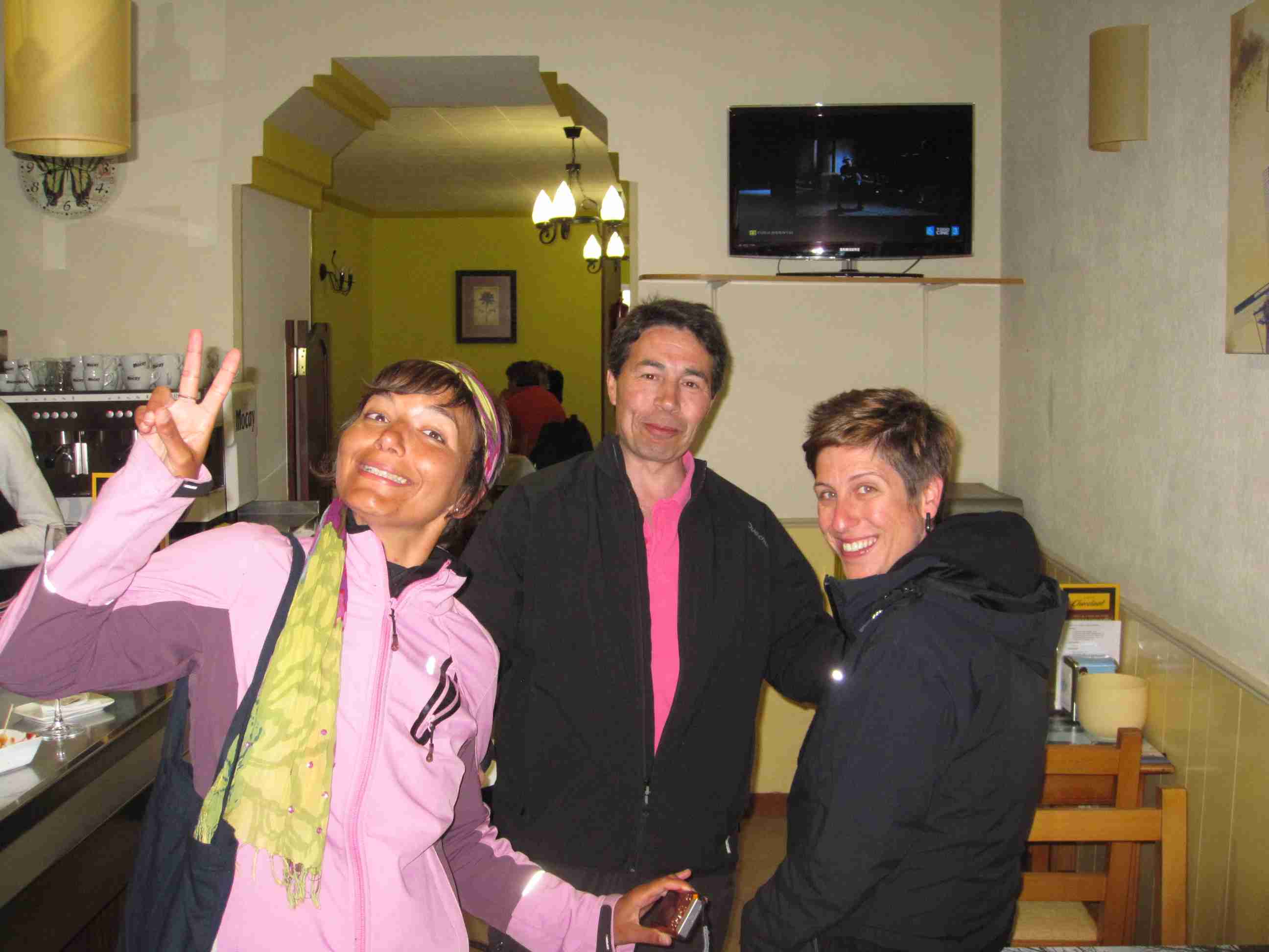 Desayuno en el bar junto al albergue con las peregrinas canarias. Amanece nuboso, con mucha bruma y frio, pero tiene buena