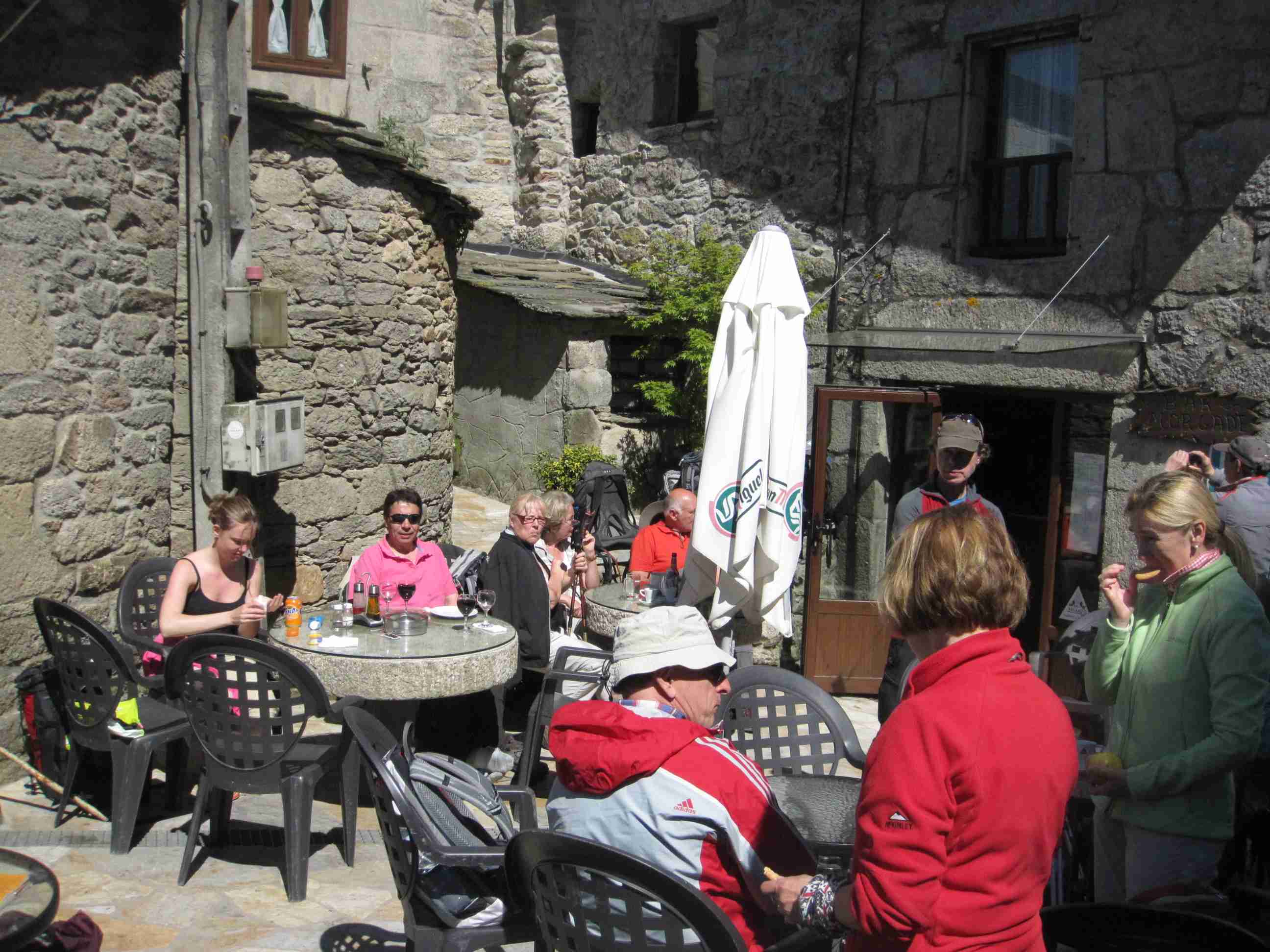 Continuamos el Camino. Parada en Morgade. Muchos peregrinos. Nos sentamos en una mesa que estaban dos peregrinas alemanas, madre e