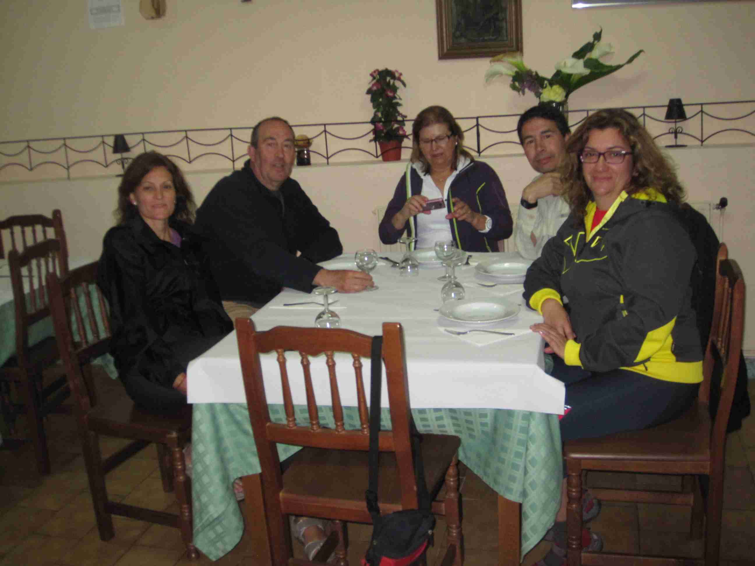 Lleno de peregrinos. Conseguimos mesa y poco después llegan Lucia y Melanie y como no habia otra mesa libre se sientan con