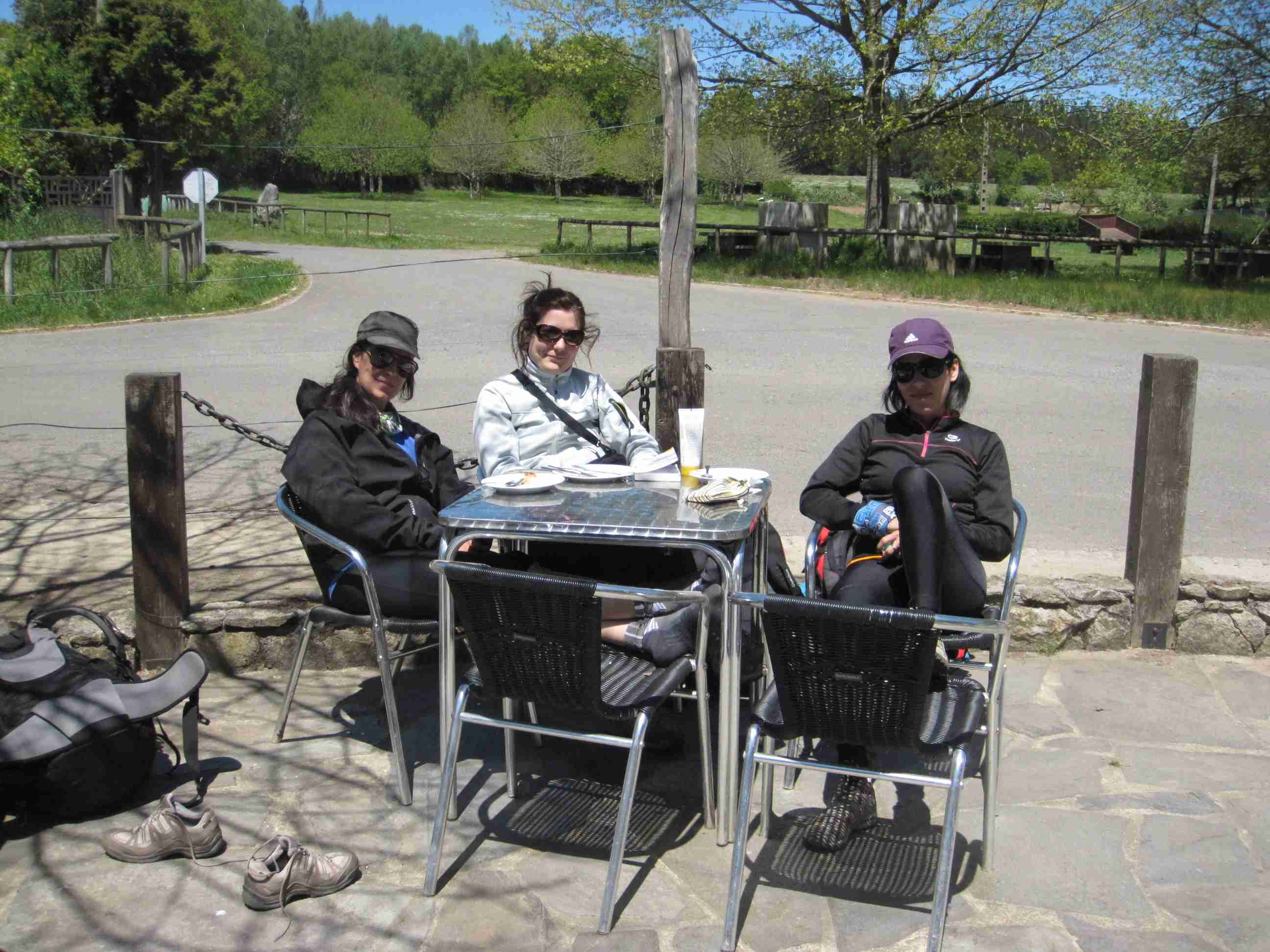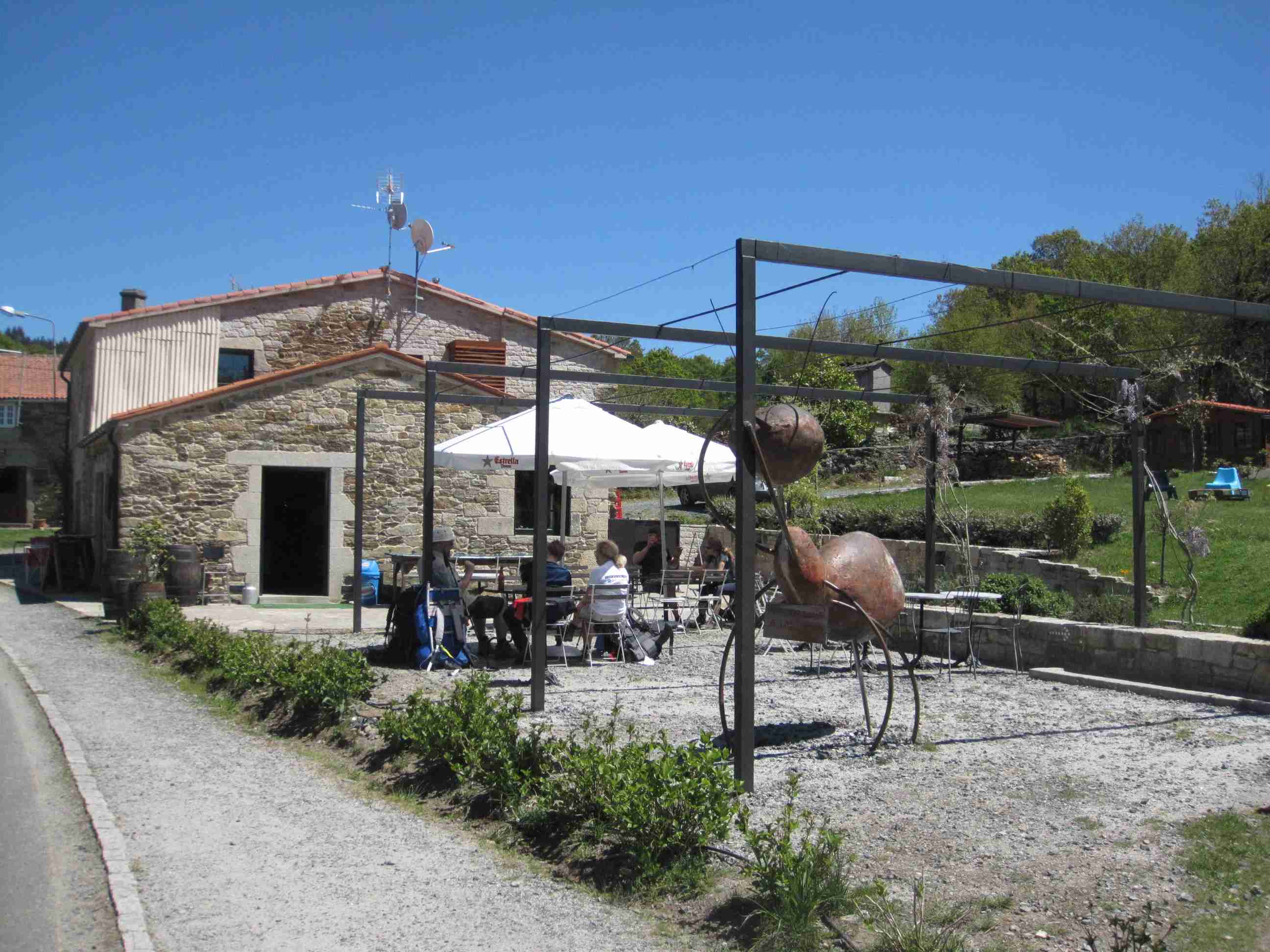 que van haciendo alguna etapa del camino. En la pequeña terraza nosotros dos solos, por lo que vemos pasar a casi todos los