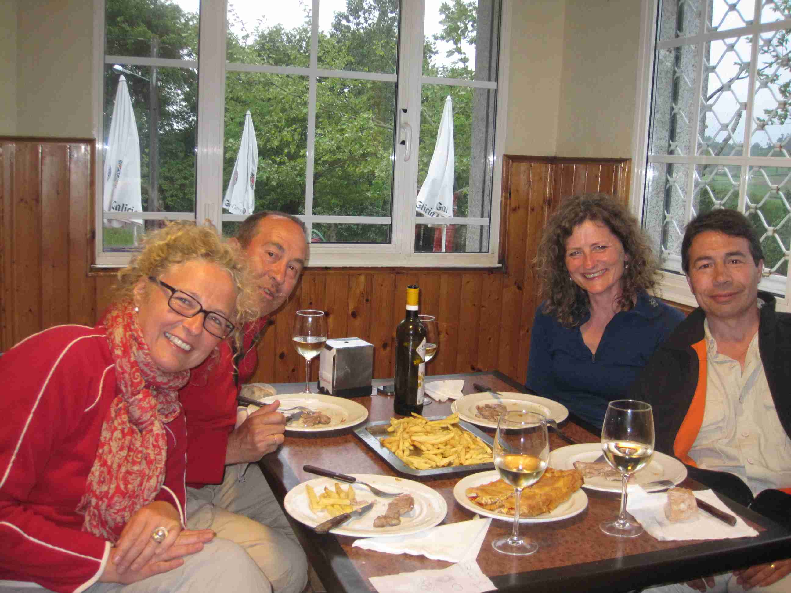 Siguiente parada en Melide, Pulperia Ezequiel. Comemos el pulpo con las peregrinas canarias y luego con las catalanas