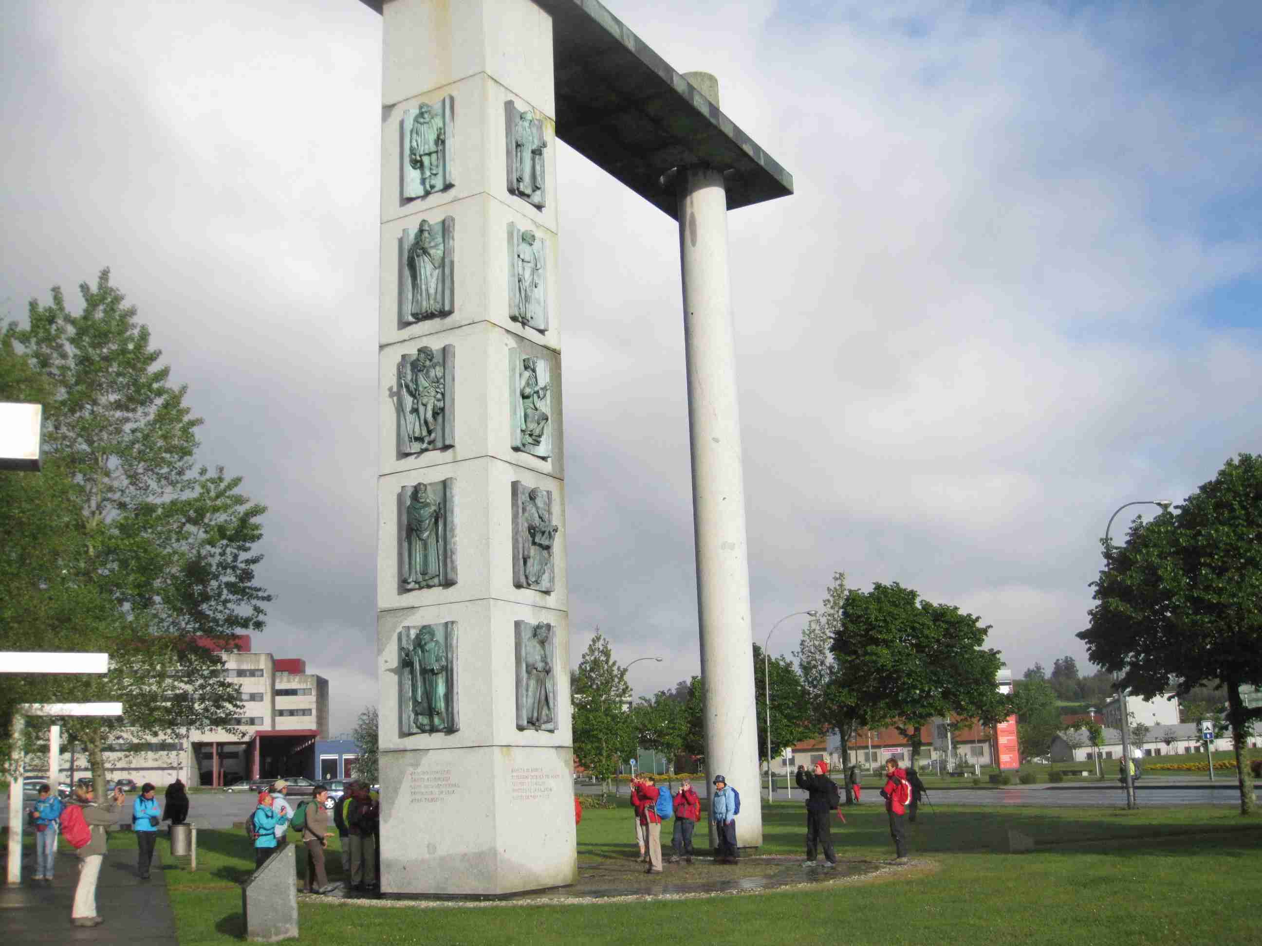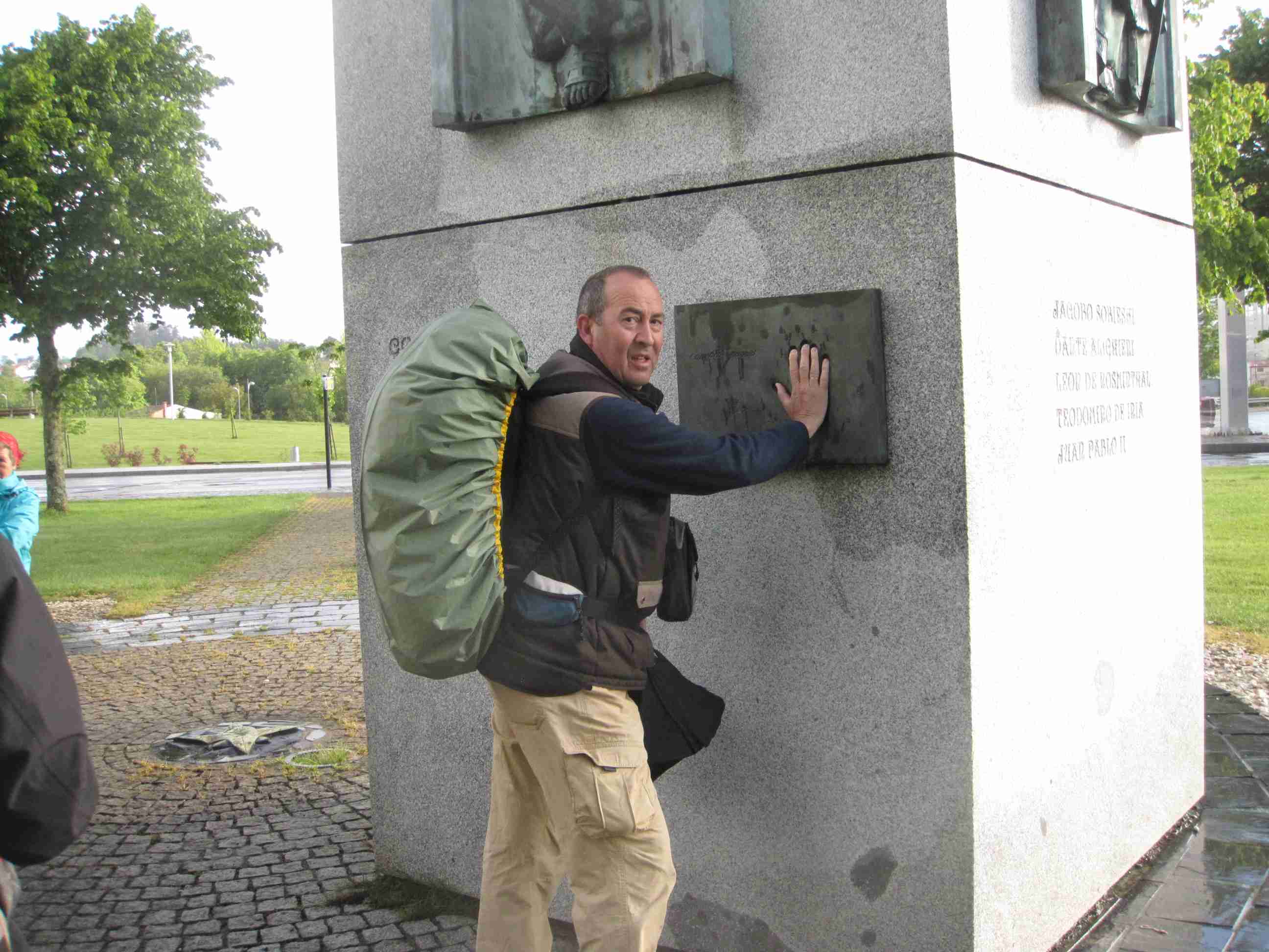 Nos hacemos unas fotos en la "Porta Itineris Sancti Iacobi", inaugurada por D. Manuel Fraga en el año jubilar compostelano