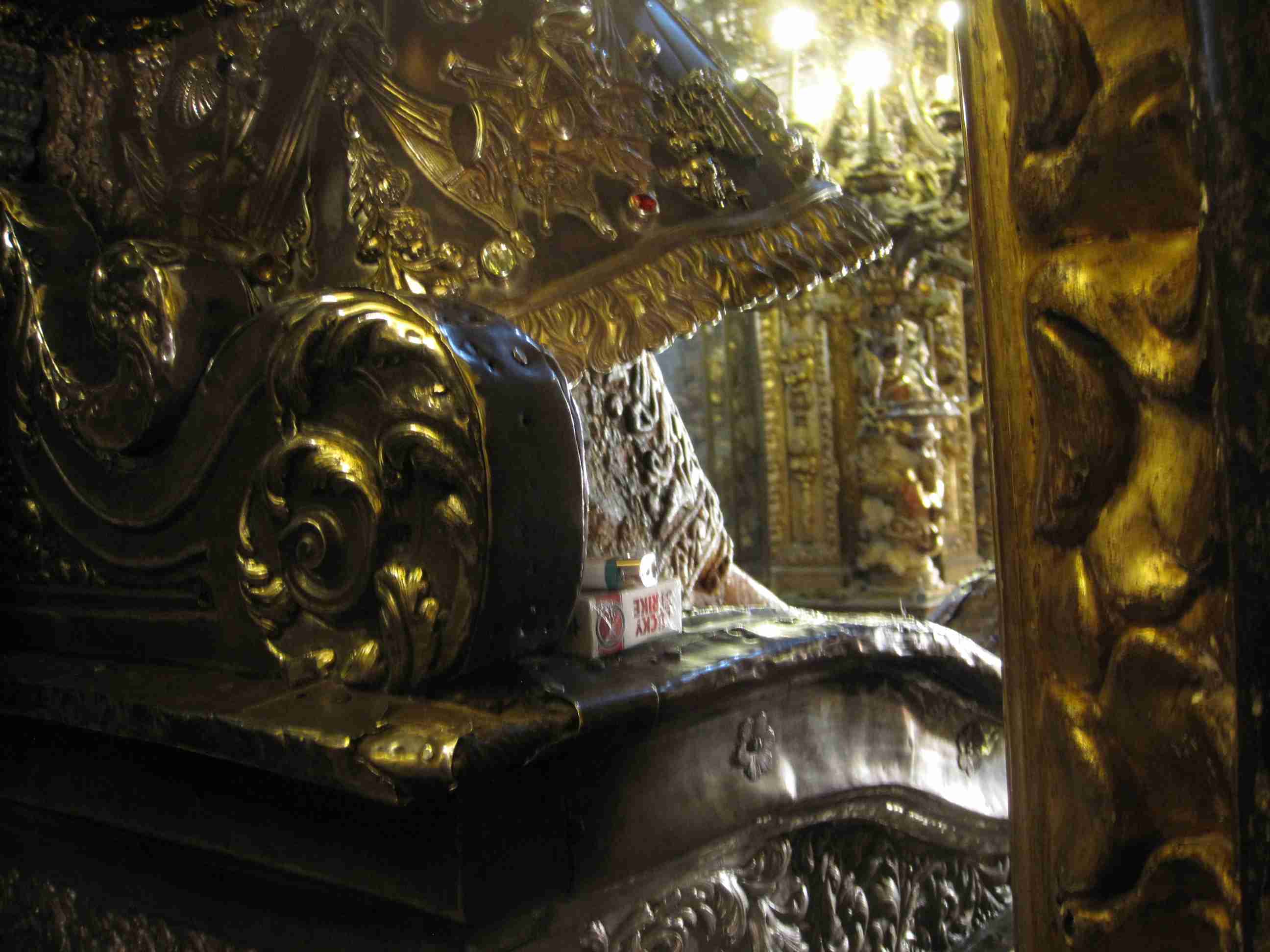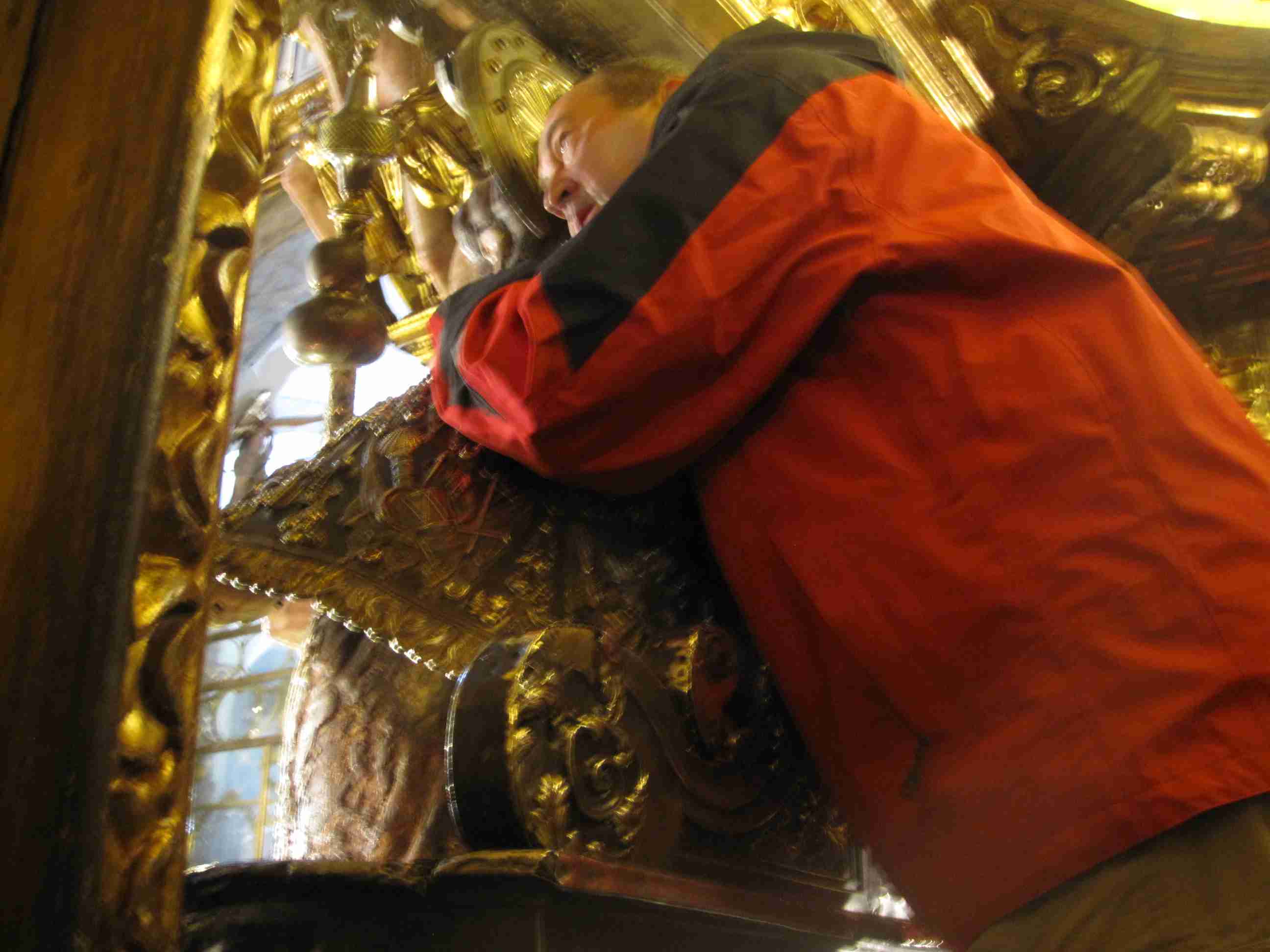 Dejamos las mochilas y nos fuimos a cumplir con el ritual del abrazo al Santo, a quien Primi dejó el paquete de tabaco con