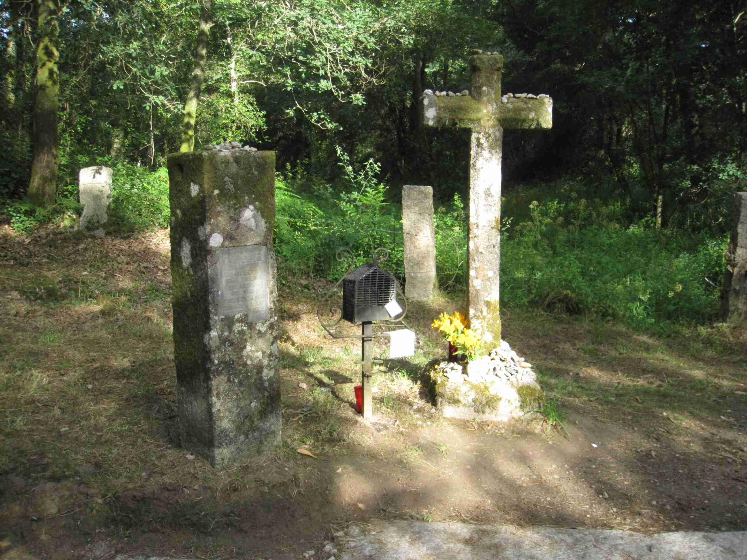 ciudad, donde falleció. Un monolito, un cruceiro y una placa junto al arroyo recuerdan este hecho.