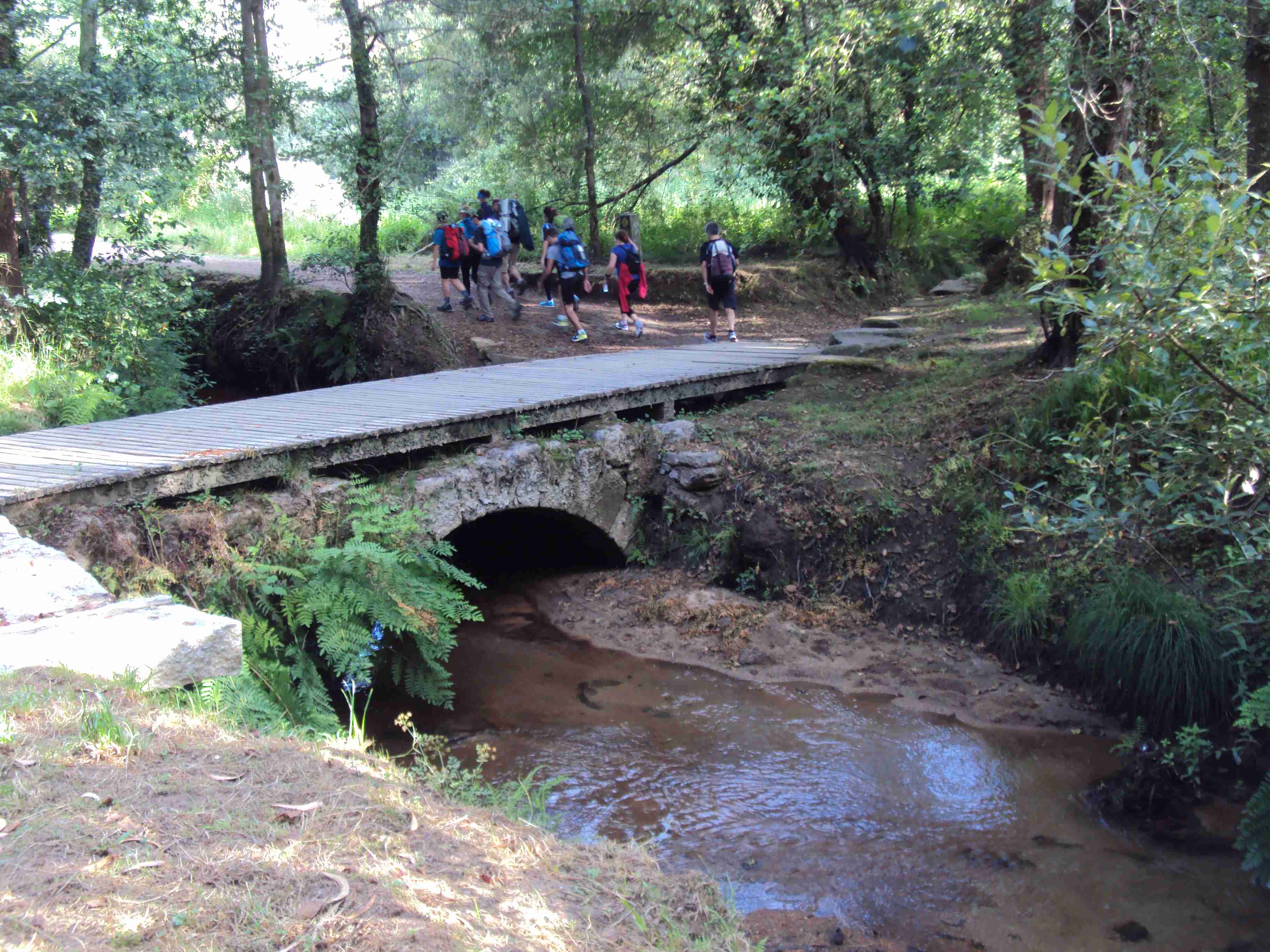 sencillo vado medieval de un solo ojo, protegido ahora por una plataforma de madera.
