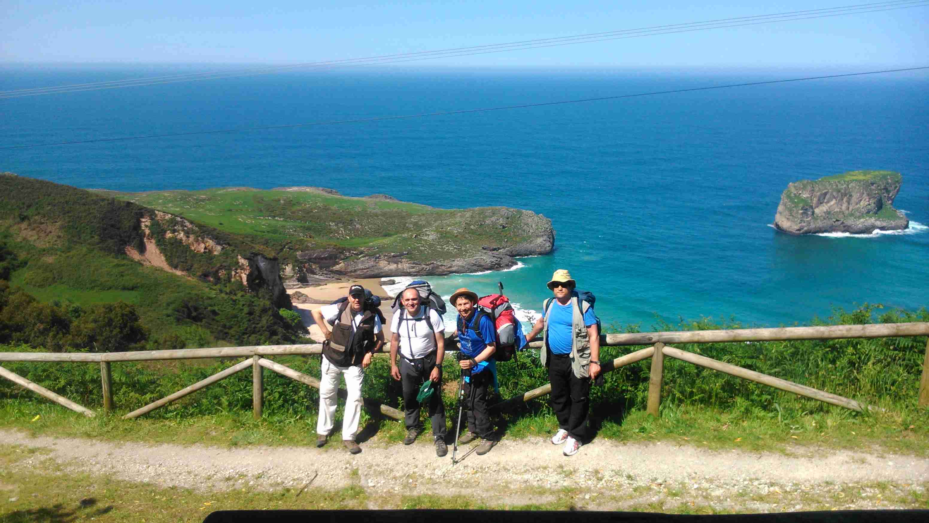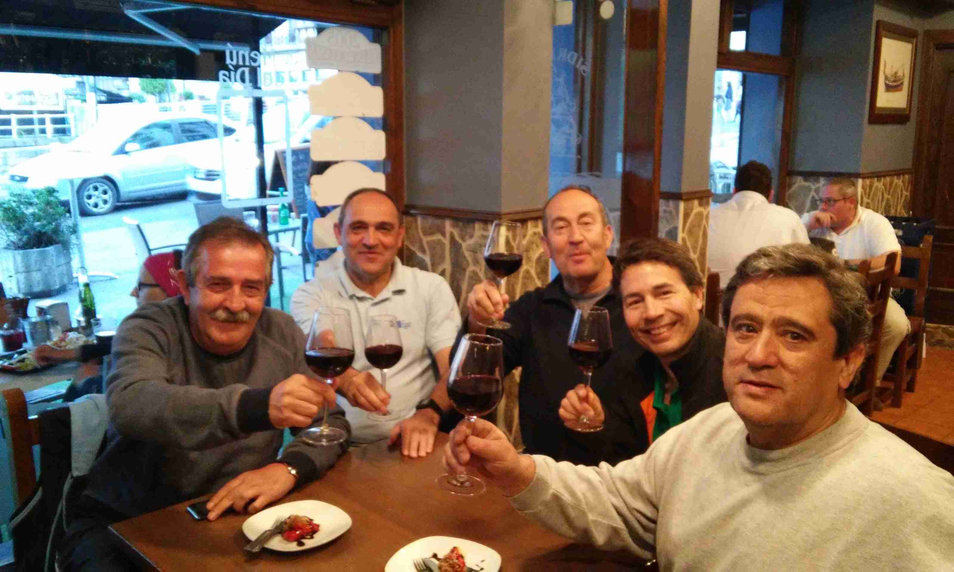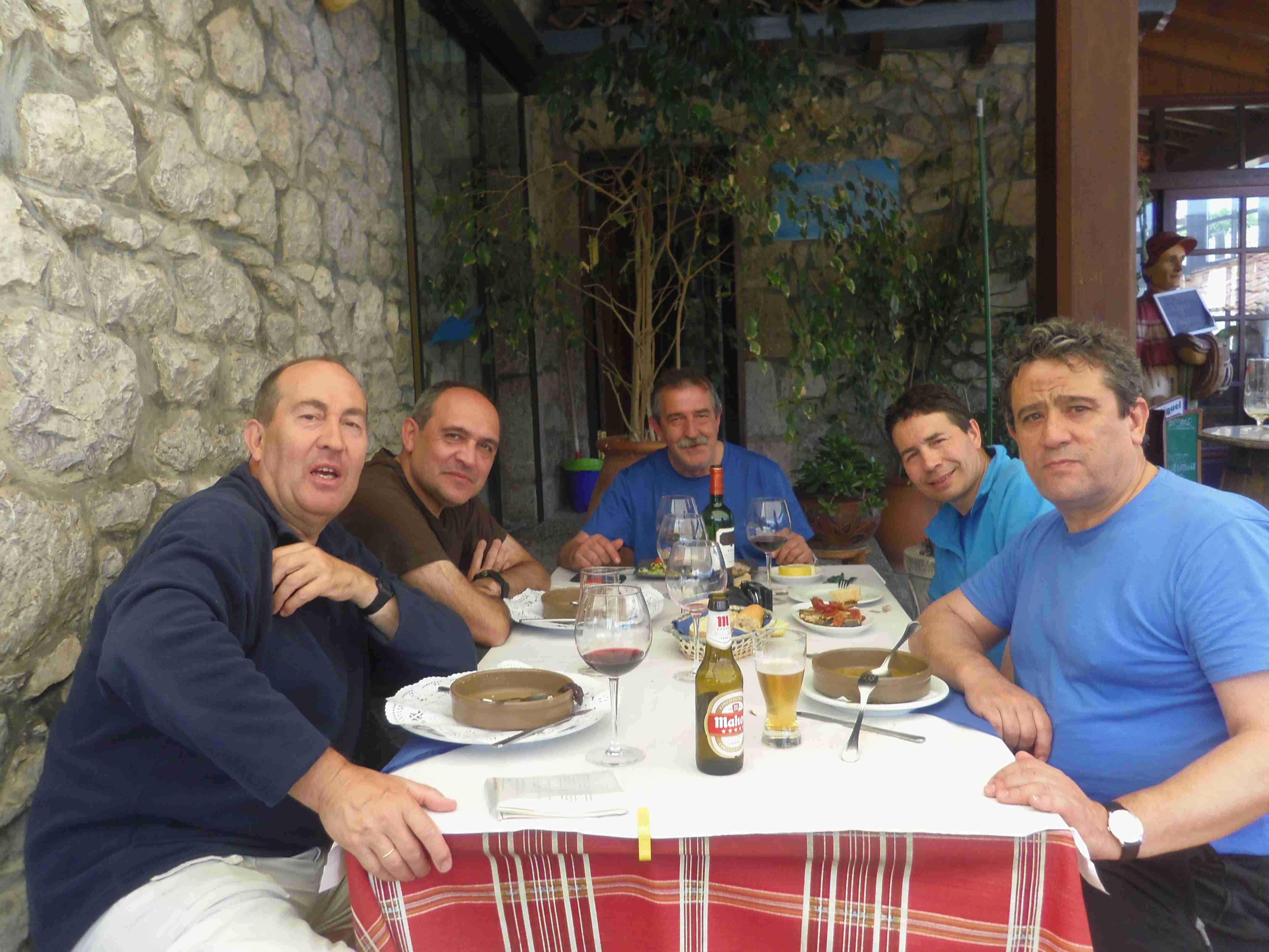 Continuamos hacia Llanes cruzando el puende de madera del río Purón. Dos kilómetros después nos detenemos en el Mesón La Fuente, en Andrín, donde Luís y Ángel nos están esperando. Pasamos un buen rato mientras comemos los cinco.