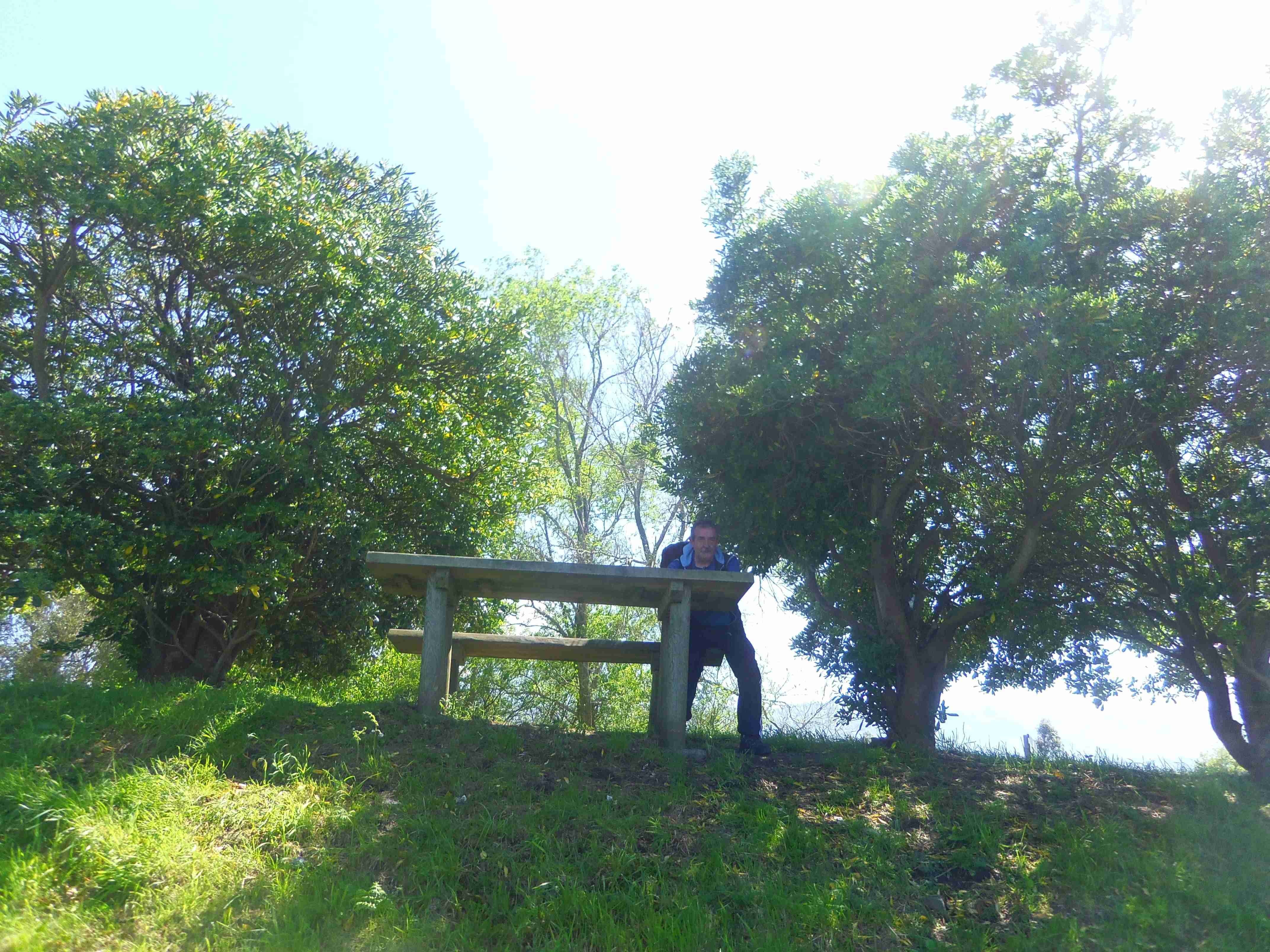 Nos extraña no haber visto a Primi, pues iba algo adelantado, por lo que le llamamos por el móvil. Parece que él no ha visto el desvío y ha continuado la senda del camino. Dando marcha atrás y otra vez hacia adelante, ha logrado llegar a Pendueles y unirse a nosotros. Después nos contaría que un ciclista "al que había adelantado en una cuesta" le había regalado un bastón que estaba entre los matorrales. Visitamos el estupendo albergue de peregrinos Santa Marina.