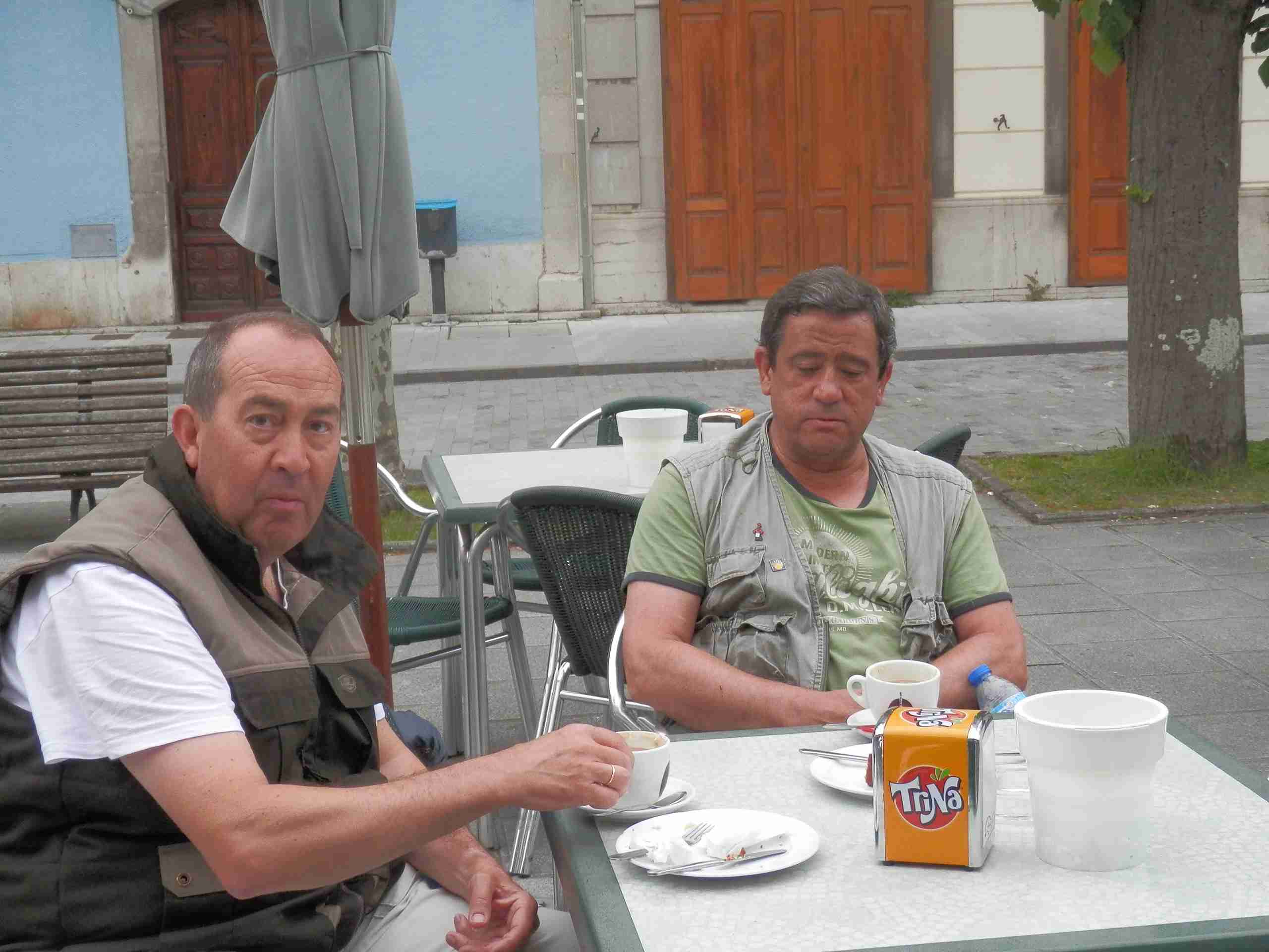 Así continuamos por carretera y monte sin encontrar nada ni a nadie. Junto a la estación Feve de la Magdalena, antes de subir a El Rellayo, encontramos a Angel tomando un tentenpié en el restaurante "El balcón de la costa de Artedo". Nos acoplamos en su mesa, cambiamos camisetas mojadas, y nos tomamos unas anchoas y unas albóndigas con su cervecita correpondiente.