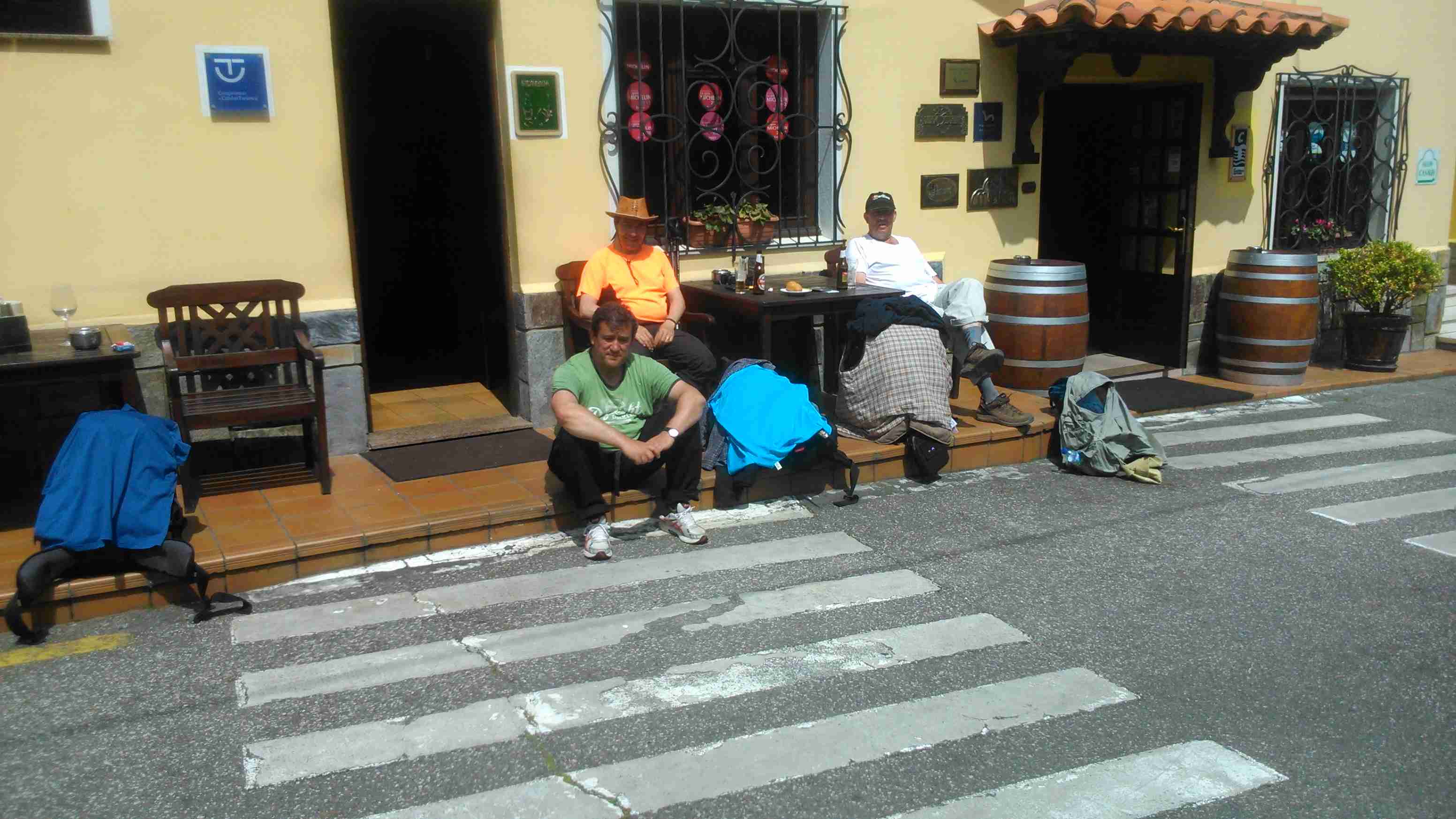 Tras descansar un poco nos fuímos bajando a la Playa de San Pedro, a kilómetro y medio más o menos, para volver pronto al café Ecu, (donde había que pagar los cinco euros del albergue), pues hacía mucho calor. Algunos bajaron a la playa después de una bien merecida siesta. Después de algunas fotos en la playa y de rehusar jugar a la paleta con un individuo que debía invitar a todo el que veía, volvimos a reunirnos en el café. A las 8 algunos volvimos al albergue donde ya estaba Pepe Rodríguez, el hospitalero, explicando muy al detalle la etapa del día siguiente, hasta Cadavedo. Poco después nos fuimos al restaurante del hotel a cenar y, pronto, después del partido, al albergue a dormir.