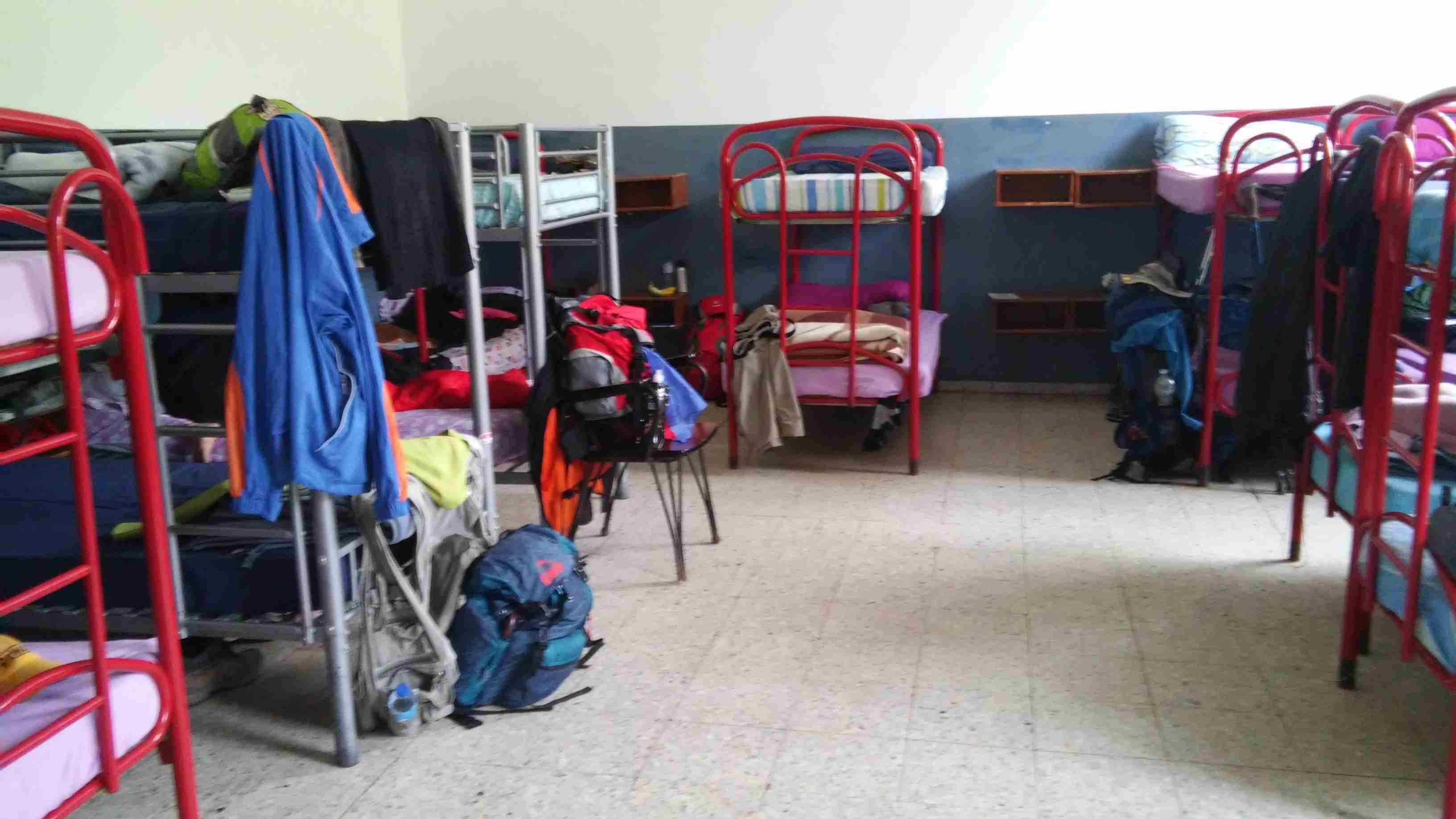 El albergue, aunque bastante amplio, sólo tenía dos servicios para unas 40 personas, lo que nos pareció un poco escaso. Había plazas suficientes para todos por lo que nos fuímos acoplando, a la espera de que a las ocho viniera el hospitalero, Pepe, dueño del único hotel de la localidad, que estaba muy cercano y donde cenaríamos, veríamos el partido y desayunaríamos al dia siguiente.