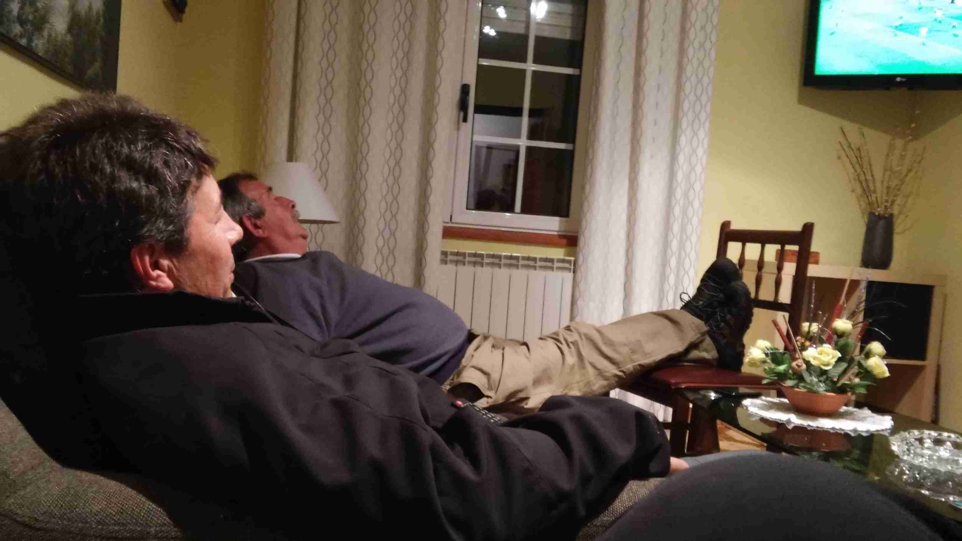 Después de disfrutar de nuestra preciosa casa con una buena siesta, hacer la colada, y dar un paseo hacia una antigua Torre convertida en Hostal, donde no nos quisieron dar ni una sóla caña pues era sólo para huéspedes del Hotel, nos fuímos al restaurante Mesón La Granda donde tomamos unas sidras, cenamos viendo el partido, y nos encontramos con Theodor y un matrimonio alemán que estaban alojados en nuestra urbanización, donde también pernoctaba un matrimonio canadiense que habíamos conocido en Soto de Luiña.