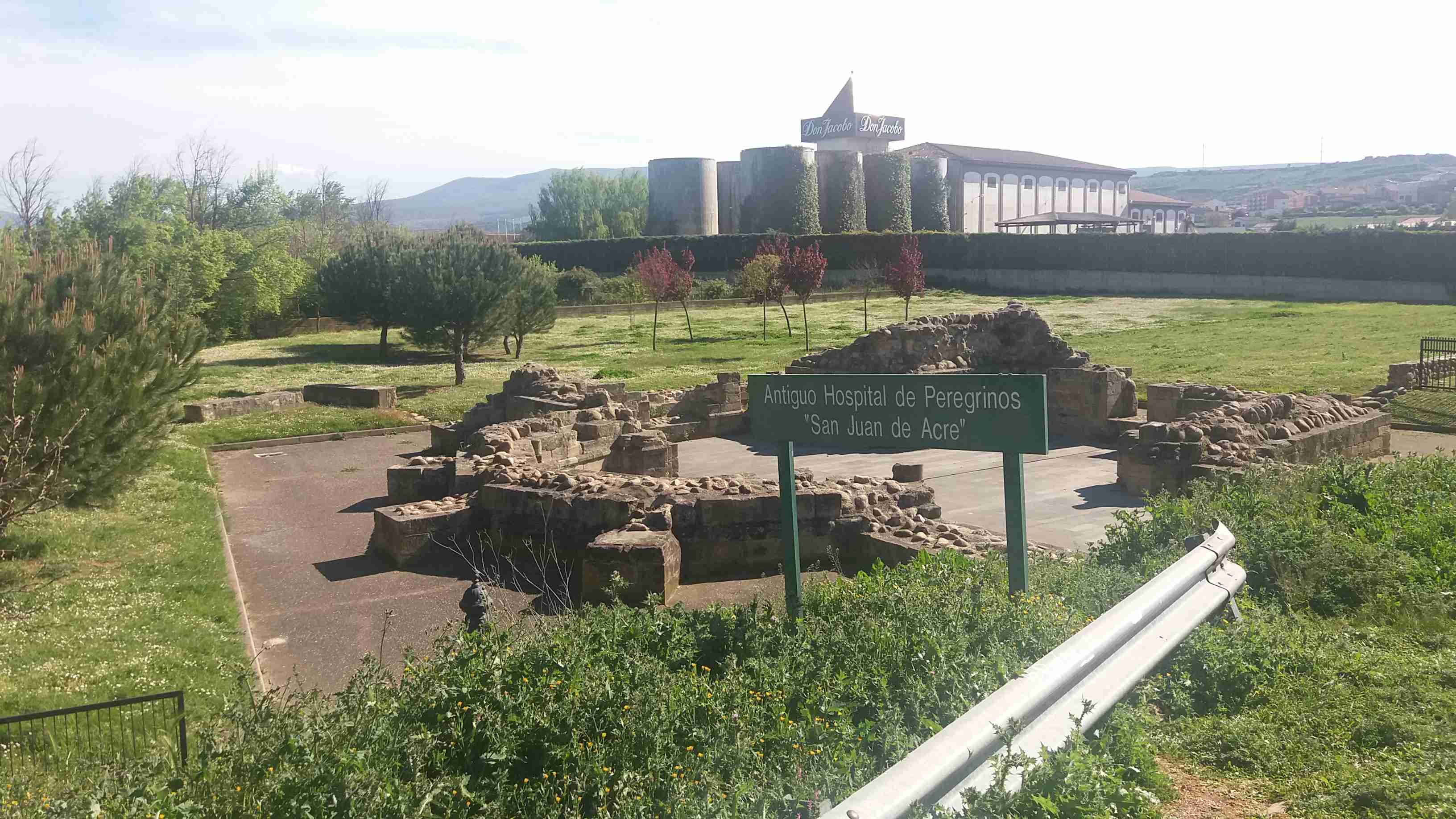 Dejamos atrás el parque para adentrarnos en grandes extensiones de terreno cargados con viñedos. Cerca ya de Naverrete nos detenemos un momento en las ruínas del Antiguo Hospital de Peregrinos de San Juan de Acre.