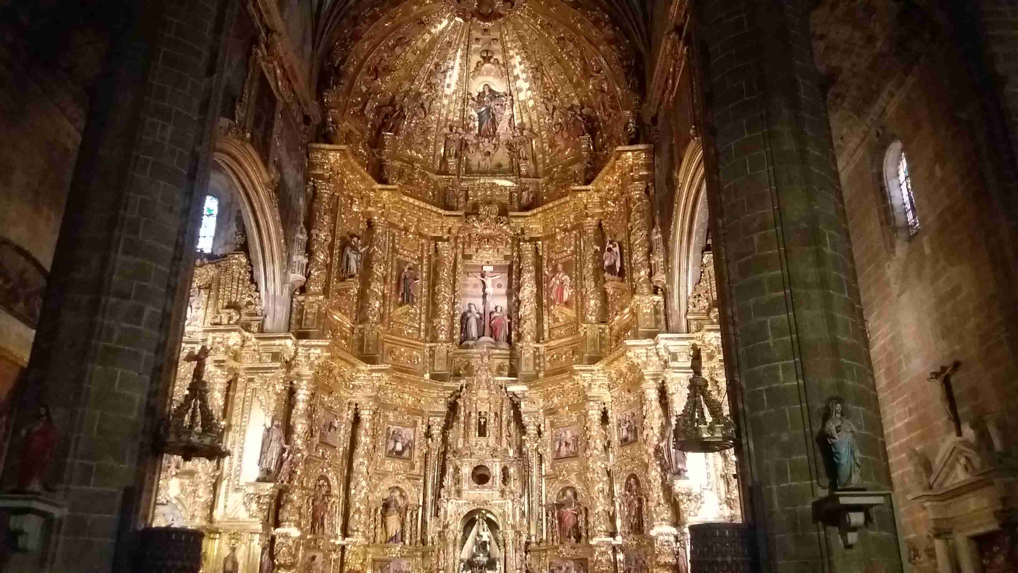 Una vez acoplados en el albergue, salimos a dar una vuelta por el bonito pueblo. En la plaza visitamos la Iglesia de Santa María de la Asunción, de estilo arquitectónico renacentista. Para poder ver bien el fabuloso altar mayor, de estilo barroco, tenemos que echar una moneda en una máquina que enciende las luces.
