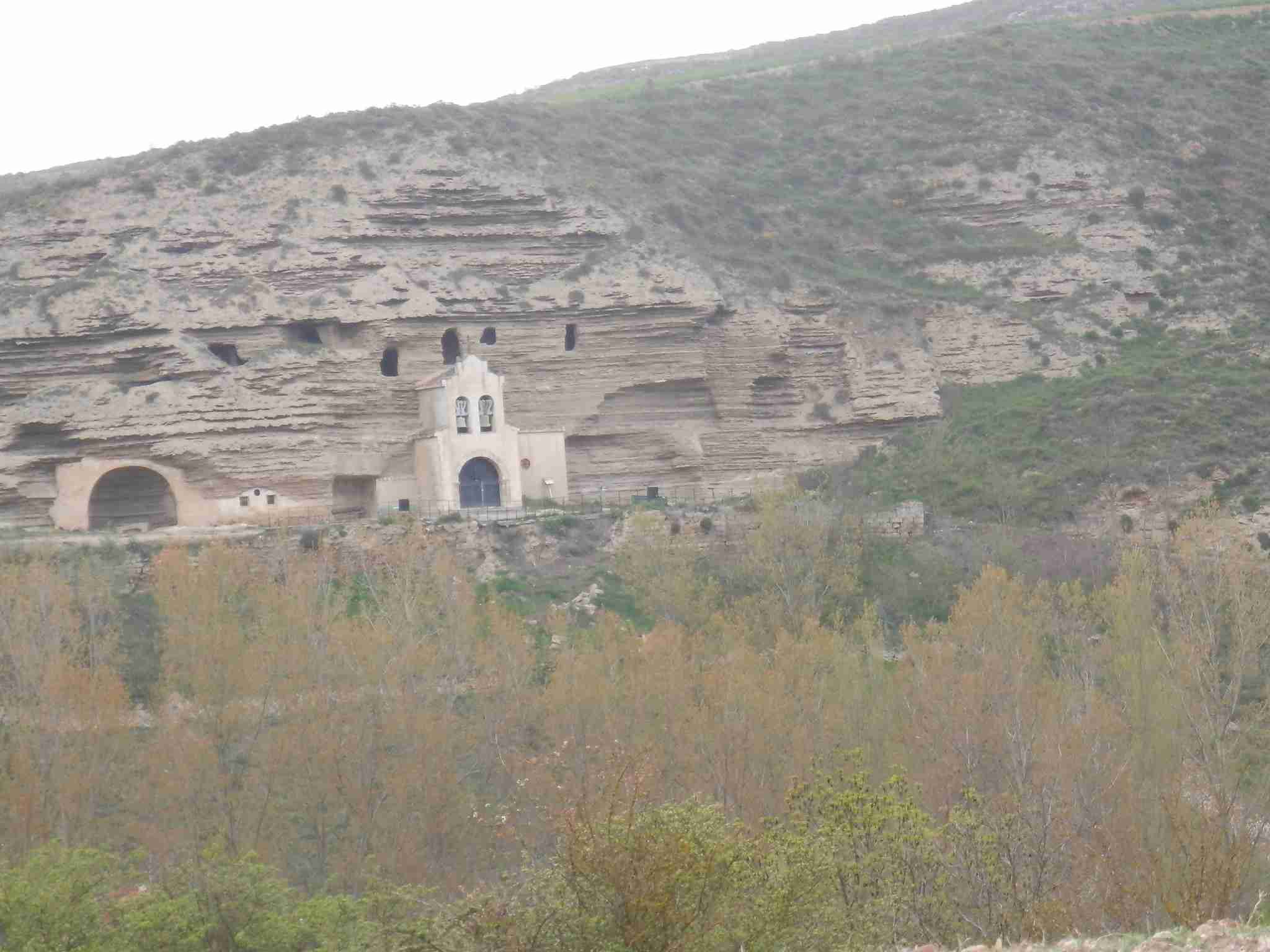Desayunamos en el único bar que encontramos abierto en Belorado en la misma plaza y partimos hacia Tosantos en una mañana fresca y agradable para caminar. Divisamos a nuestra derecha, a lo lejos, la curiosa ermita rupestre de la Virgen de la Peña excavada en la montaña.
