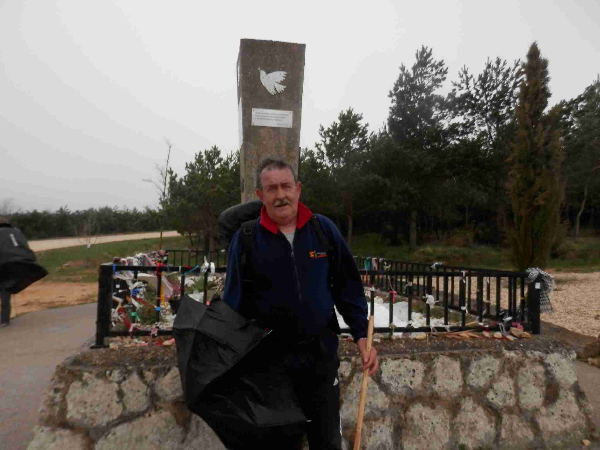 El camino por los bosques es muy agradable aunque se había levantado un viento bastante frío. Justo en el Monumento a los Caídos en la Guerra Civil nos encontramos a las dos amigas catalanas. Una de ellas abandonaría el Camino al día siguiente. Ha comenzado a llover.