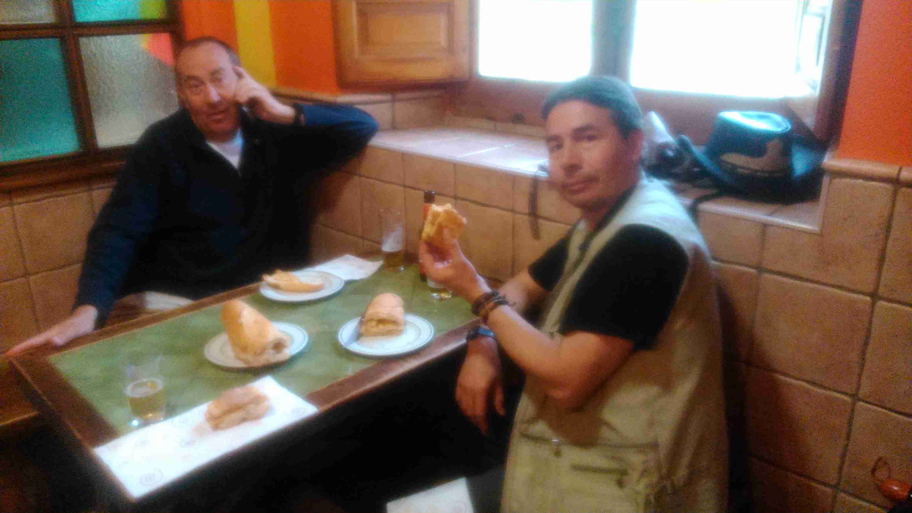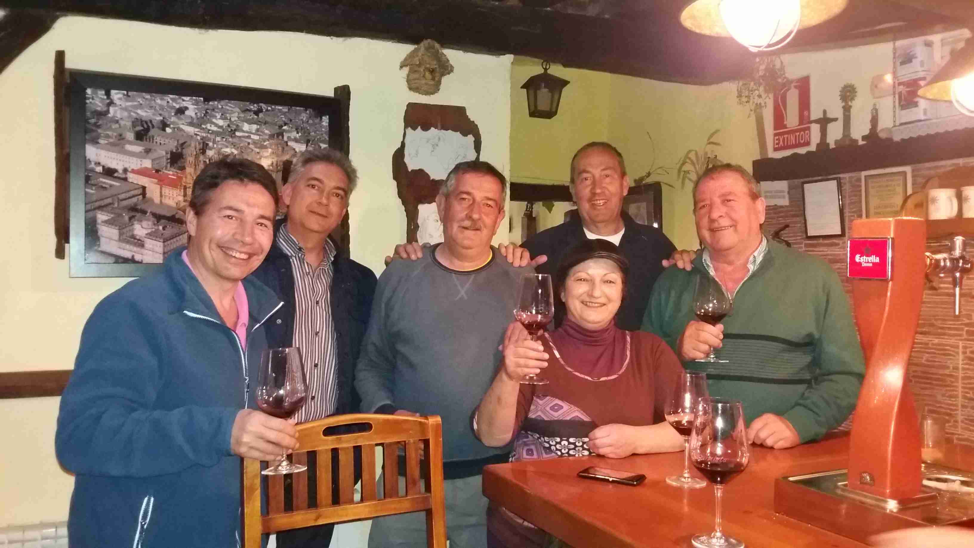Finalizados los partidos, salimos a dar una vuelta por el pequeño pueblo. Como continuaba lloviendo, nos metimos en otro bar cercano, esta vez sin gente, a tomar otro chato. Mientras tomamos la consumición se acercan a la barra varias personas con las que entablamos una agradable conversación. Se trataban de el exalcalde de Belorado, el alcalde de Agés y su esposa, y la enérgica dueña del bar.