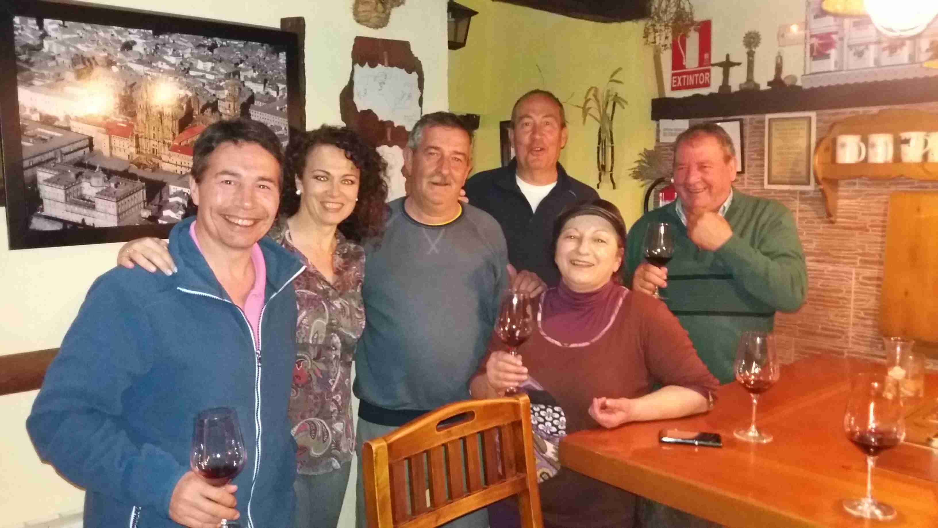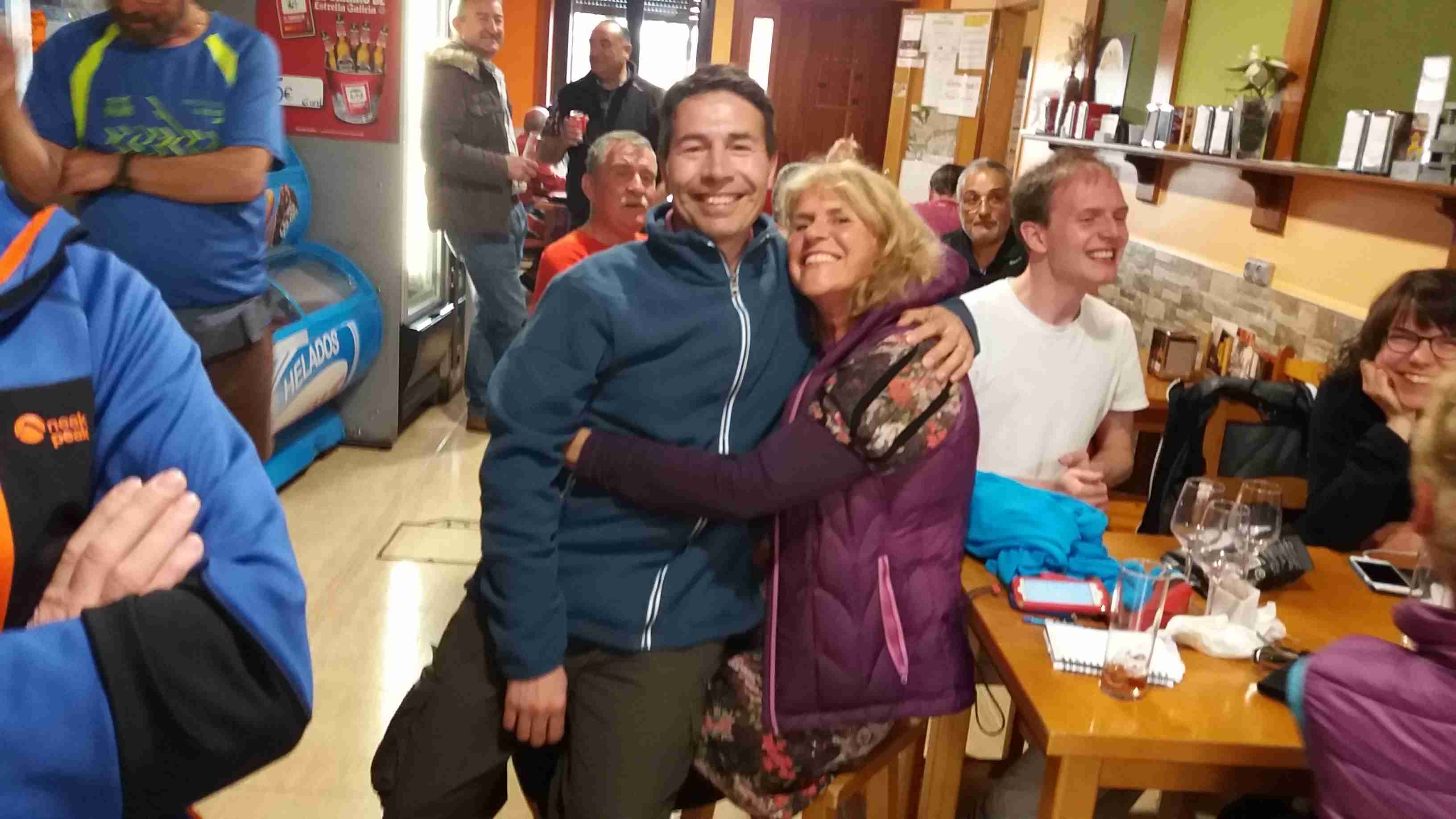 En el bar, completamente lleno de peregrinos y de gente del pueblo, había ambiente de futbol con seguidores tanto del Real Madrid, como del Barcelona. Saludamos a algunos peregrinos ya conocidos entre los que se encontraban Pippa y su hermana que no paraban de reir.
