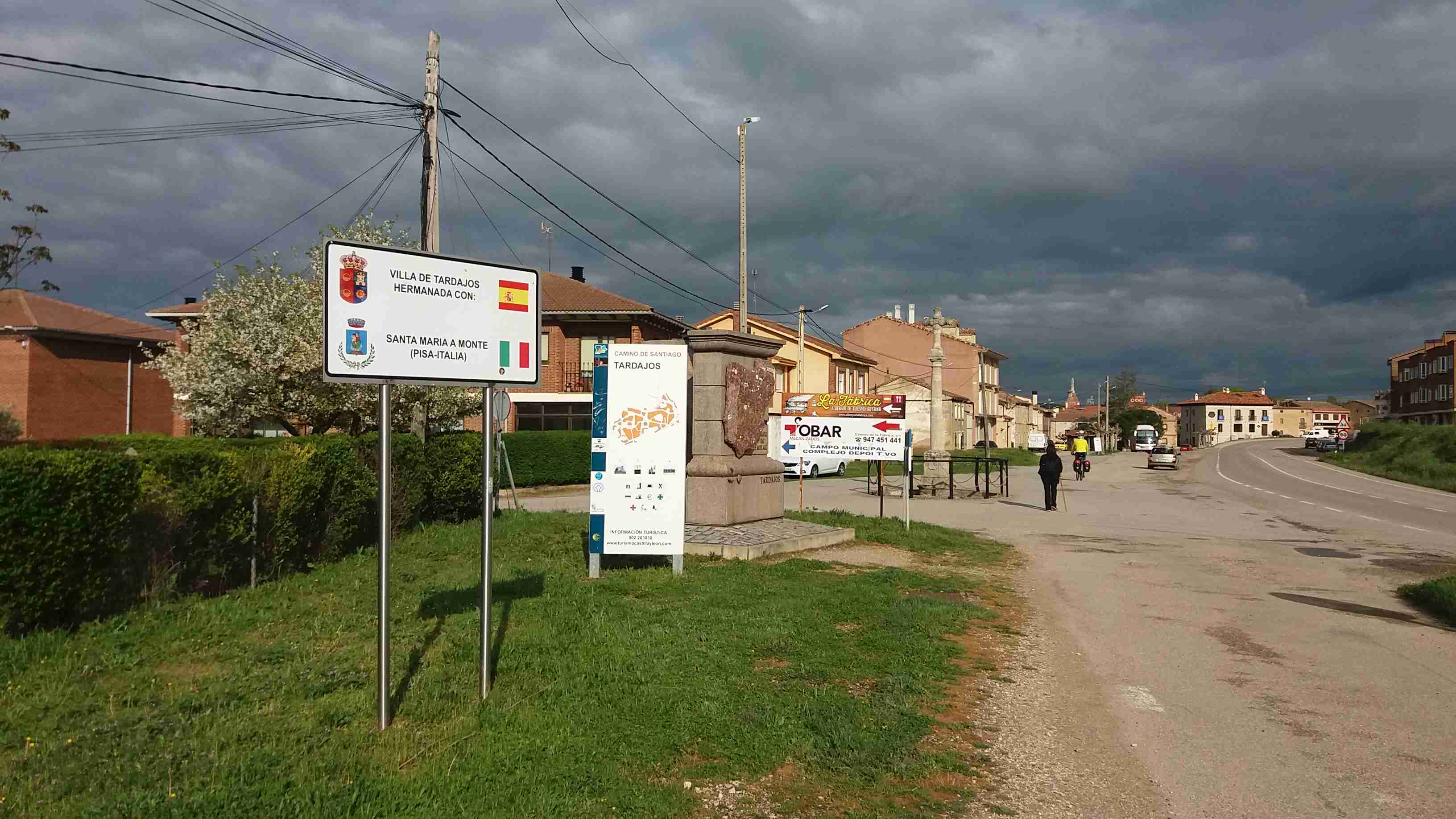 Cruzamos el puente sobre el río Arlanzón y lo dejamos a nuestra izquierda, siguiendo su margen durante varios kilómetros. Ängel se ha adelantado, yo voy tras él, y Primi, rezagado, viene tras de nosotros. Nos juntamos en Tardajos, donde paramos a tomar unas cañas.