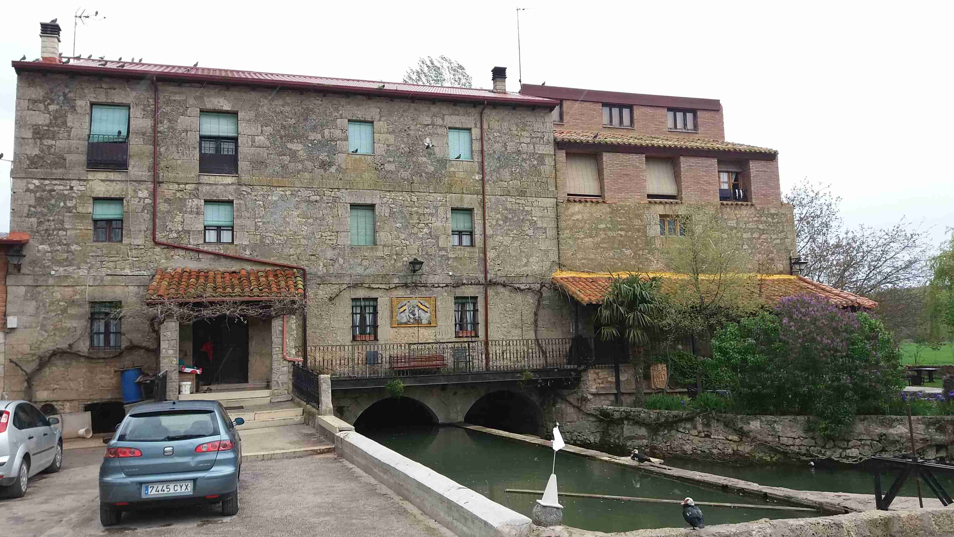Después de picar algo para comer, más o menos a la hora acordada llegamos a Hornillos, donde, sentados en una cruz de piedra, sin esperar mucho, nos recoge Maxi en un coche y nos acerca, a pocos kilómetros, a lo que en realidad era un molino adaptado como una preciosa casa rural preparado para turistas, con habitaciones, camas y comidas.