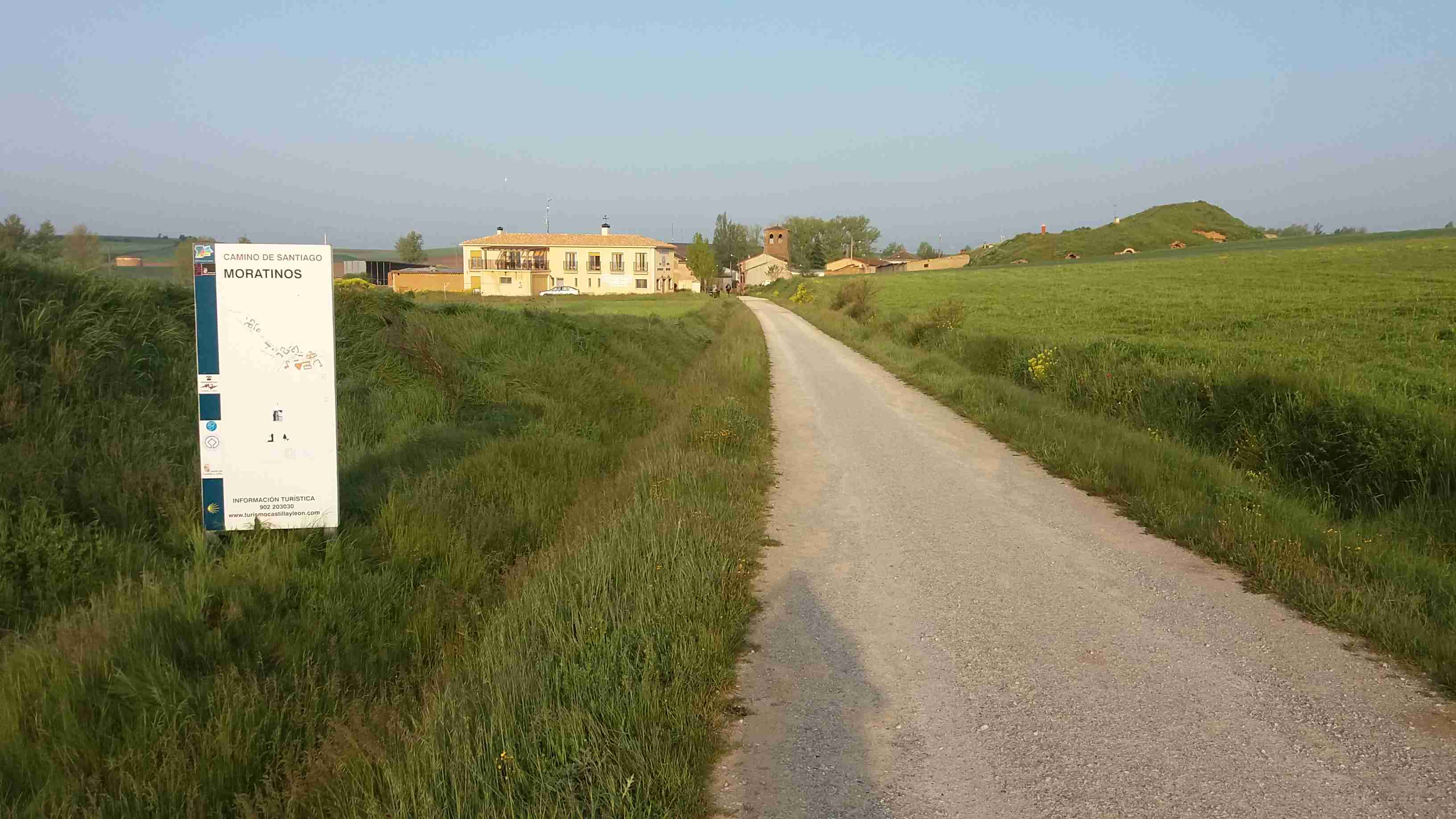 Aunque hemos dormido lo suficiente no hemos sido los primeros en levantarnos. Muchos peregrinos se nos han adelantado. Después de desayunar muy temprano, por un camino de tierra hemos llegado a Moratinos. Son de agradecer estos caminos tan largos y llanos que sólo se hacen incómodos con las frecuentes lluvias de esta época. Si fueran por carretera, no serían tan cómodos.