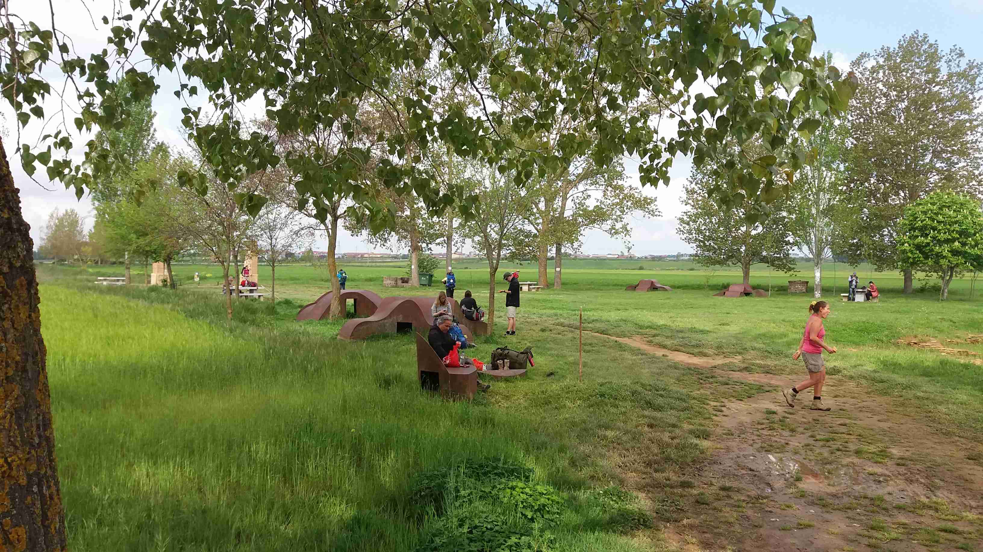 Tomamos un pequeño descanso junto al conjunto escultórico denominado Sahagún Centro Geográfico del Camino de Santiago, que recrea las imágenes de Alfonso VI y Bernardo de Seridad, las dos figuras más importantes que contribuyeron al gran esplendor de la localidad.