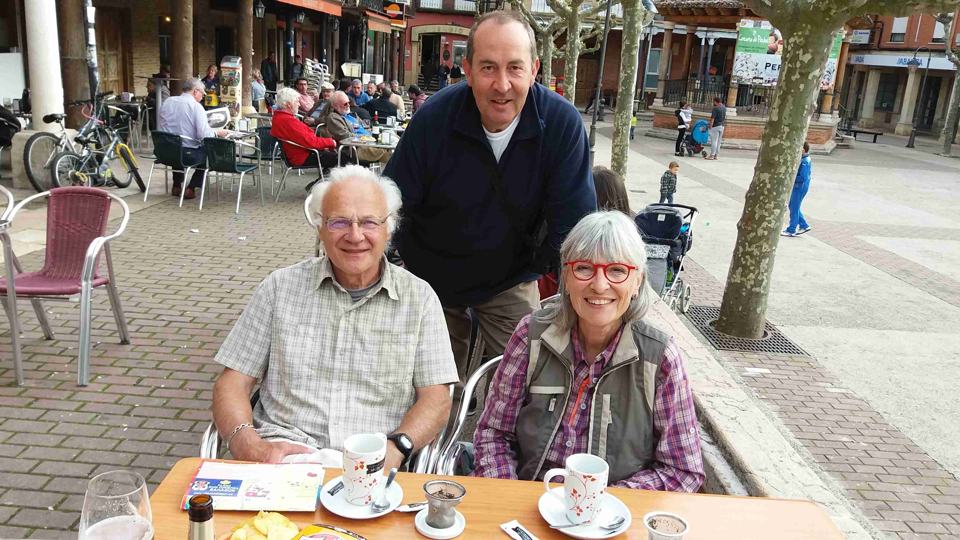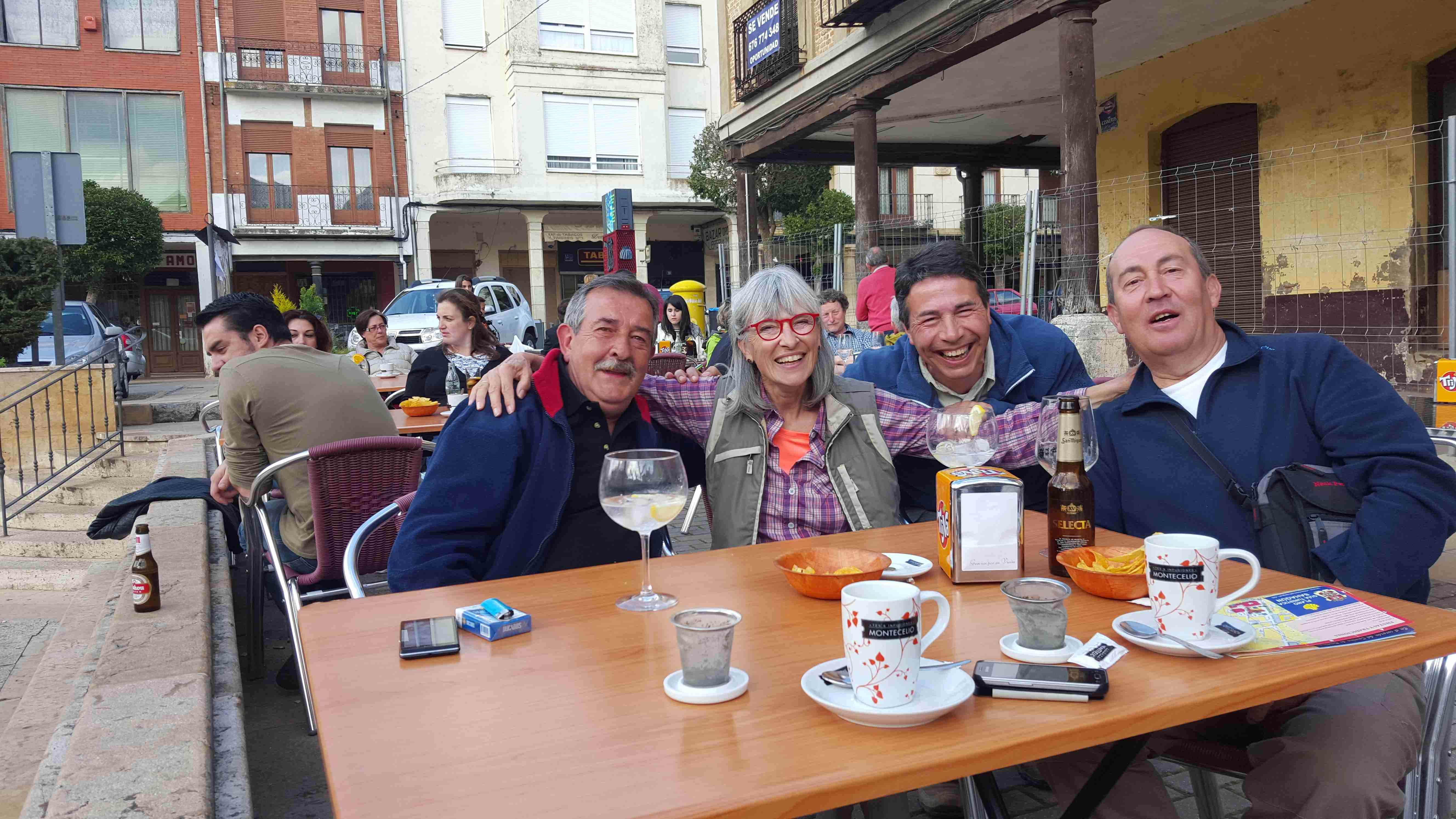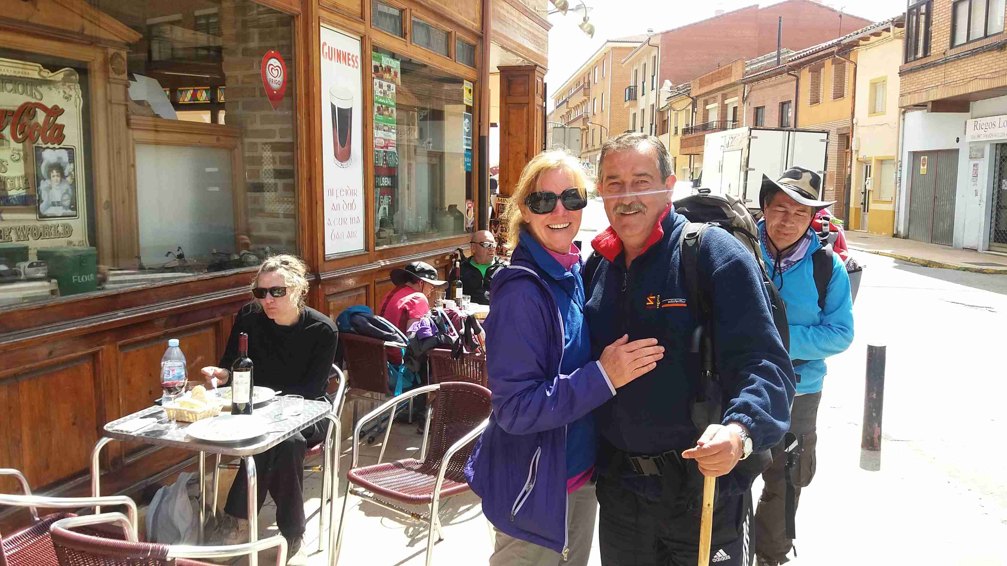 Por la tarde nos sentamos a tomar café en una terraza. Conversamos con algunos pereqrinos conocidos, sobre todo con el simpático matrimonio de peregrinos que residía en Córcega y que tuvimos de compañeros en la Casa Rural de Maxi.