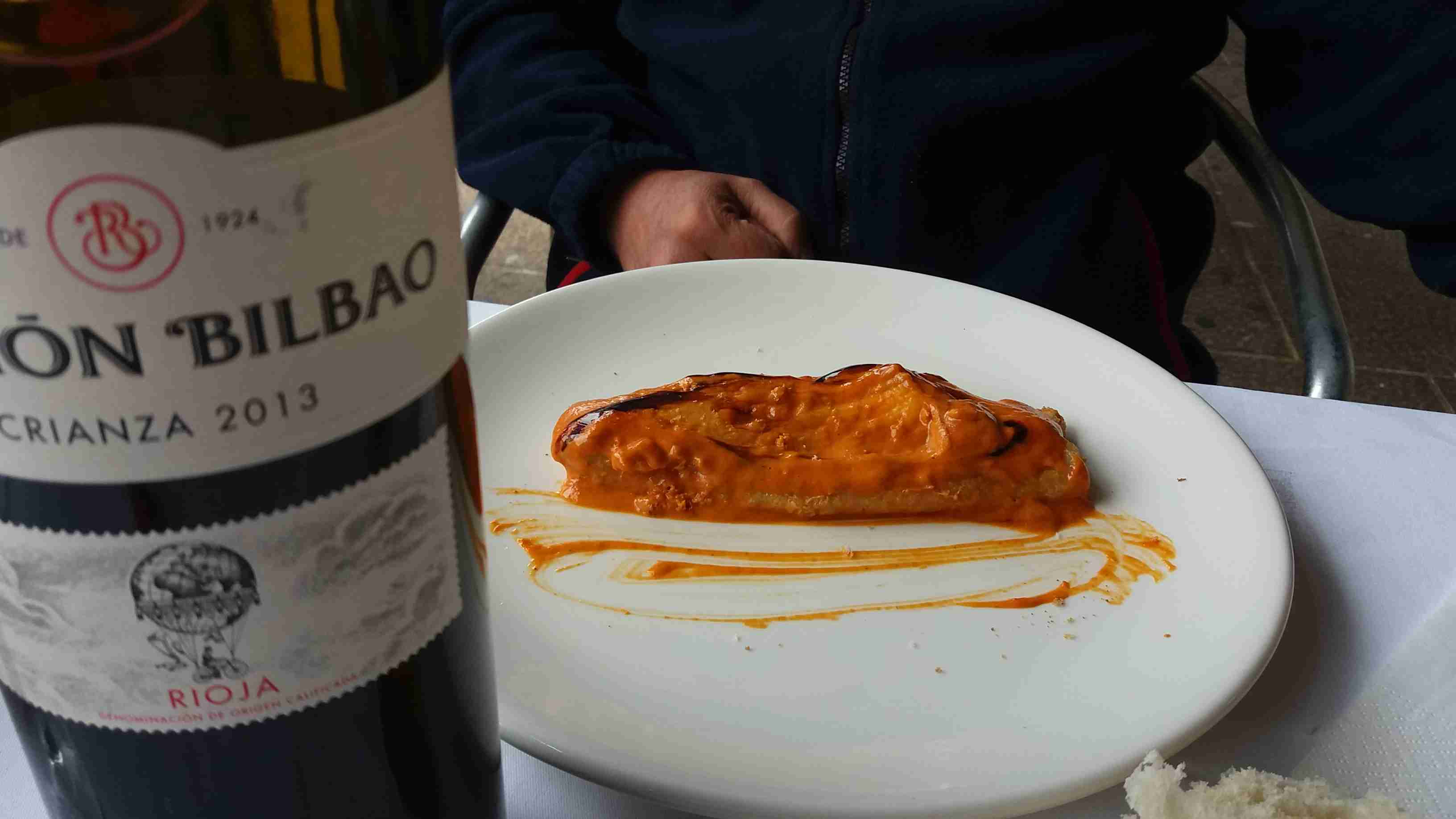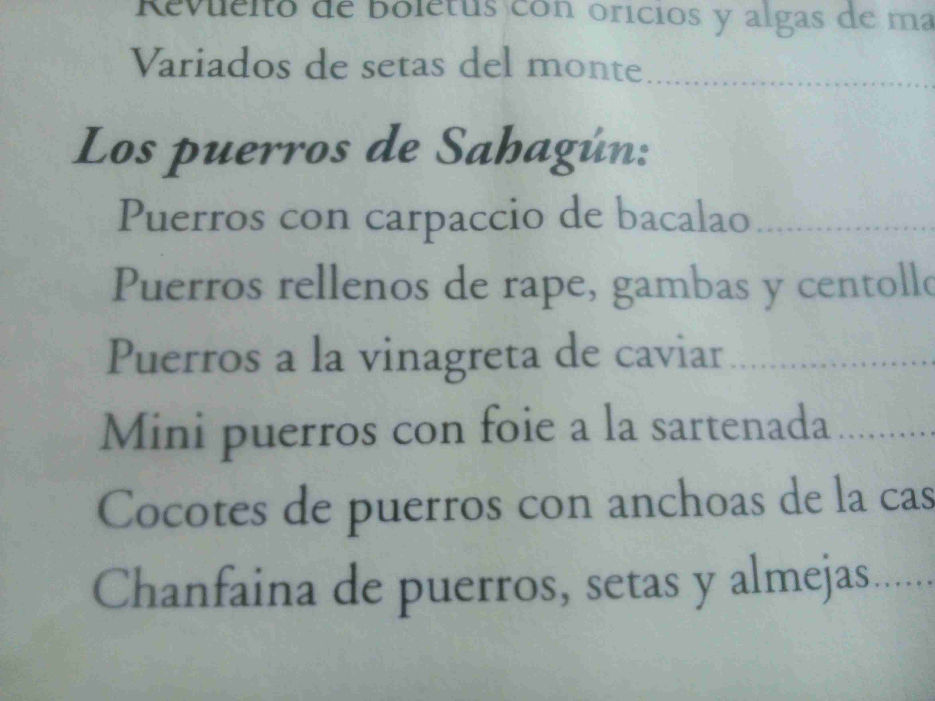 Había mucha actividad en la plaza debido a las comuniones, así que después de tomar unas cañas nos sentamos en un restaurante a comer. Pedimos unos puerros que estaban riquísimos. Los puerros son el producto destacado de Sahagún, y hay variadas elaboraciones con ellos en las cartas de los restaurantes de la población.