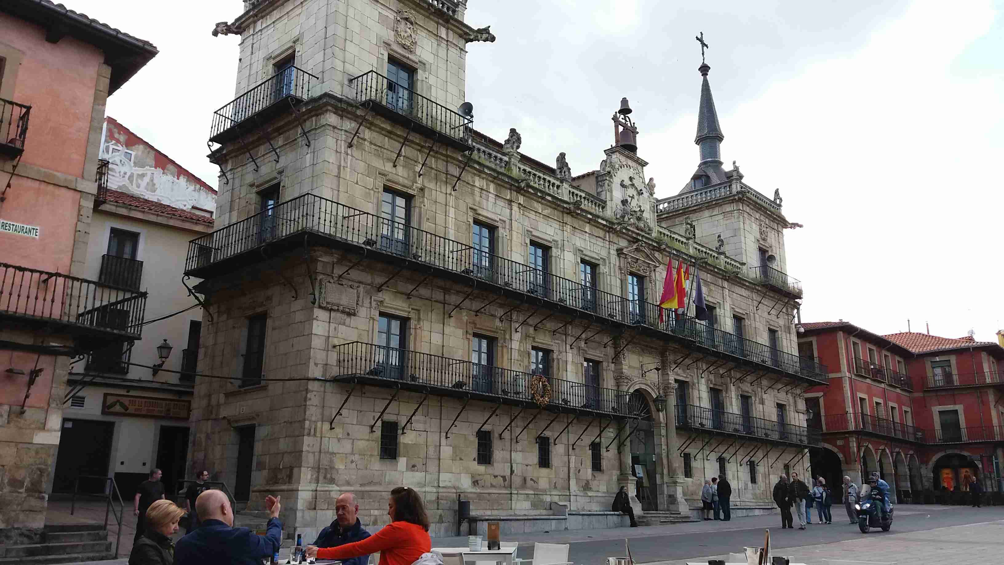 Después de algunos paseos y algunas cañas, volvemos a la Plaza de San Miguel con intención de cenar algo. Mientras degustamos unos exquisitos calechos leoneses entran Cris, el peregrino canadiense y su mujer, a la que no conocíamos pues se había lesionado y venía haciendo el Camino en taxi por delante de su marido, esperándole en cada pueblo donde pensaba parar.