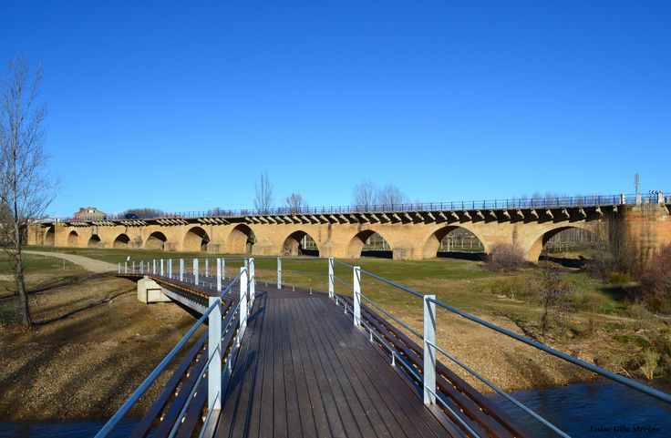 Dejamos atrás la Iglesia de Santa María y cruzamos el río Esla por un puente de piedra mientras vemos la parte amurallada de la población. Y a la salida del pueblo se puede observar parte de la muralla que se conserva a día de hoy. Antigüamente, Mansilla de las Mulas estaba fortificada en su totalidad, teniendo 4 puertas de entrada que coincidian con los 4 puntos cardinales.