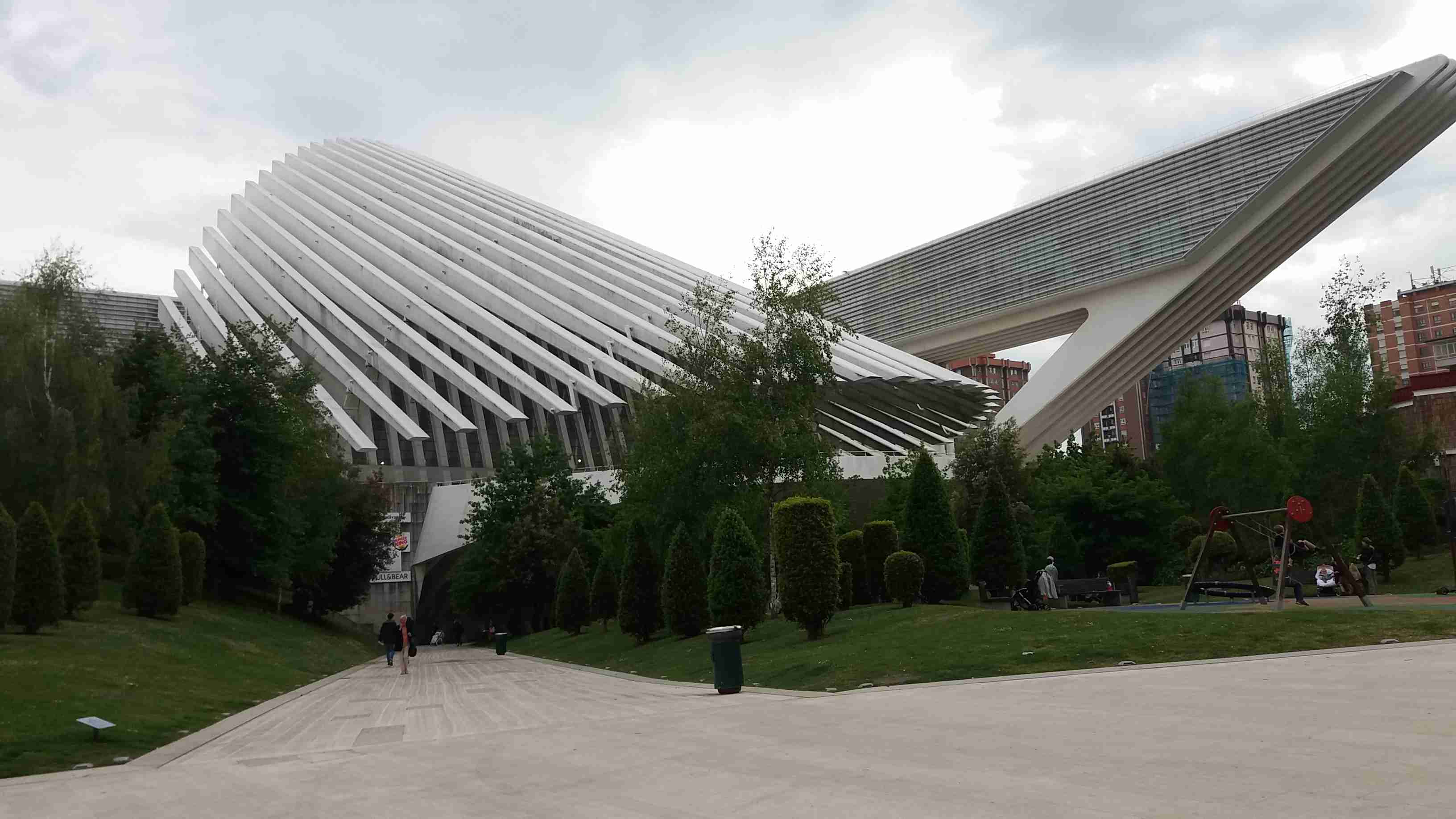 Dejamos atrás el Teatro Campoamor y visitamos el espectacular Palacio de Exposiciones y Congresos de la Ciudad de Oviedo.