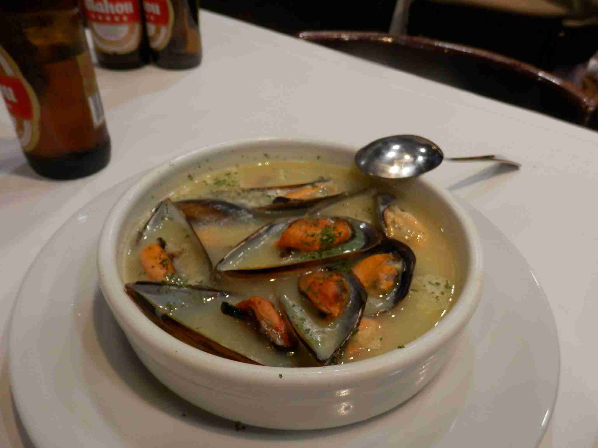 Después nos acercamos de nuevo al restaurante La Pumarada, donde mientras cenamos fritos de pixin, mejillones al vapor y picadillo con patatas, vemos el primer tiempo del Celta de Vigo - Manchester.