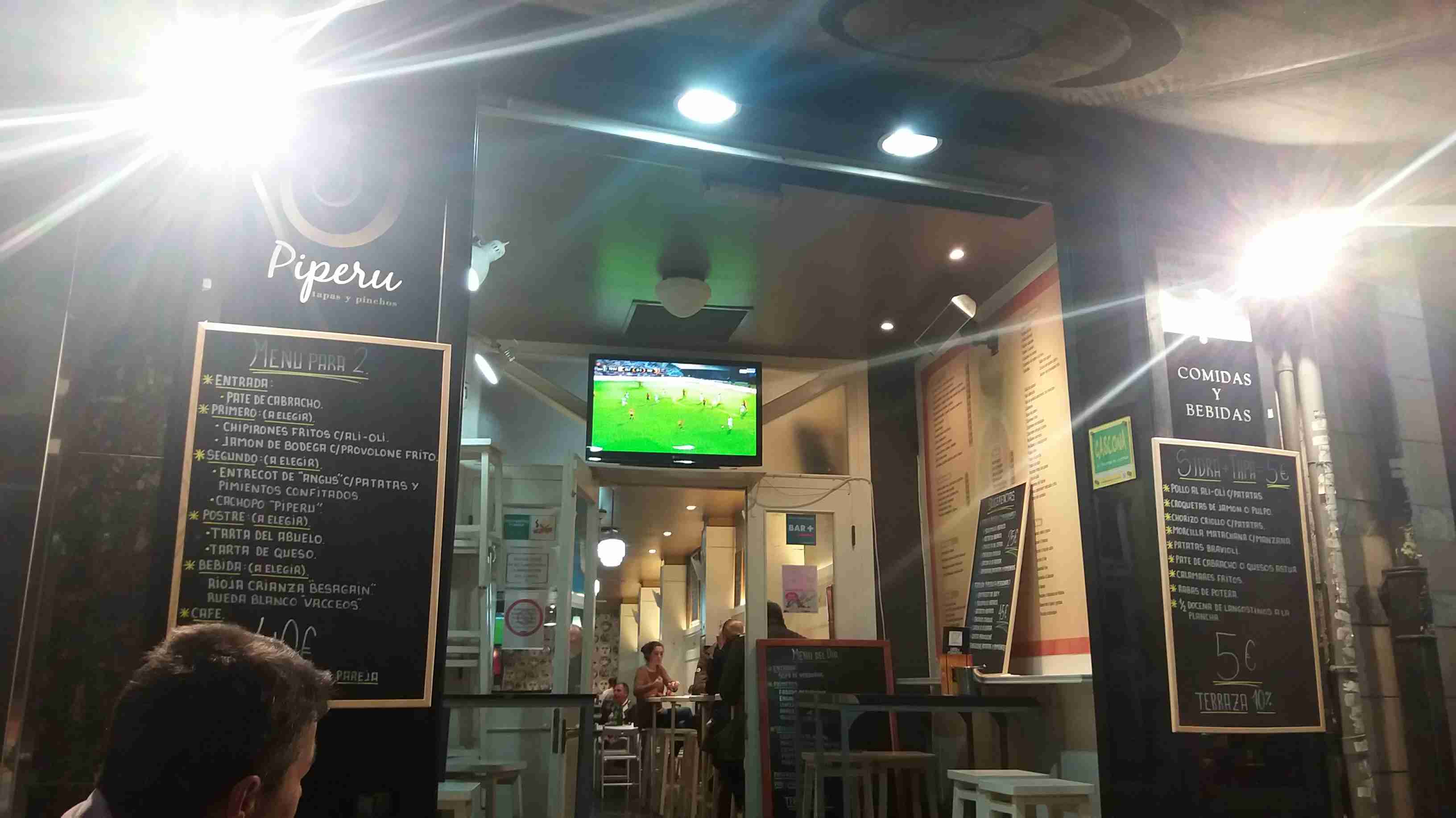 Después de cenar, para ver el segundo tiempo, nos sentamos a tomar unas cervezas en un bar de la Gascona en la terraza de fuera, pues hace bastante bueno, y desde allí nos vamos a dormir al albergue. Eran en torno a