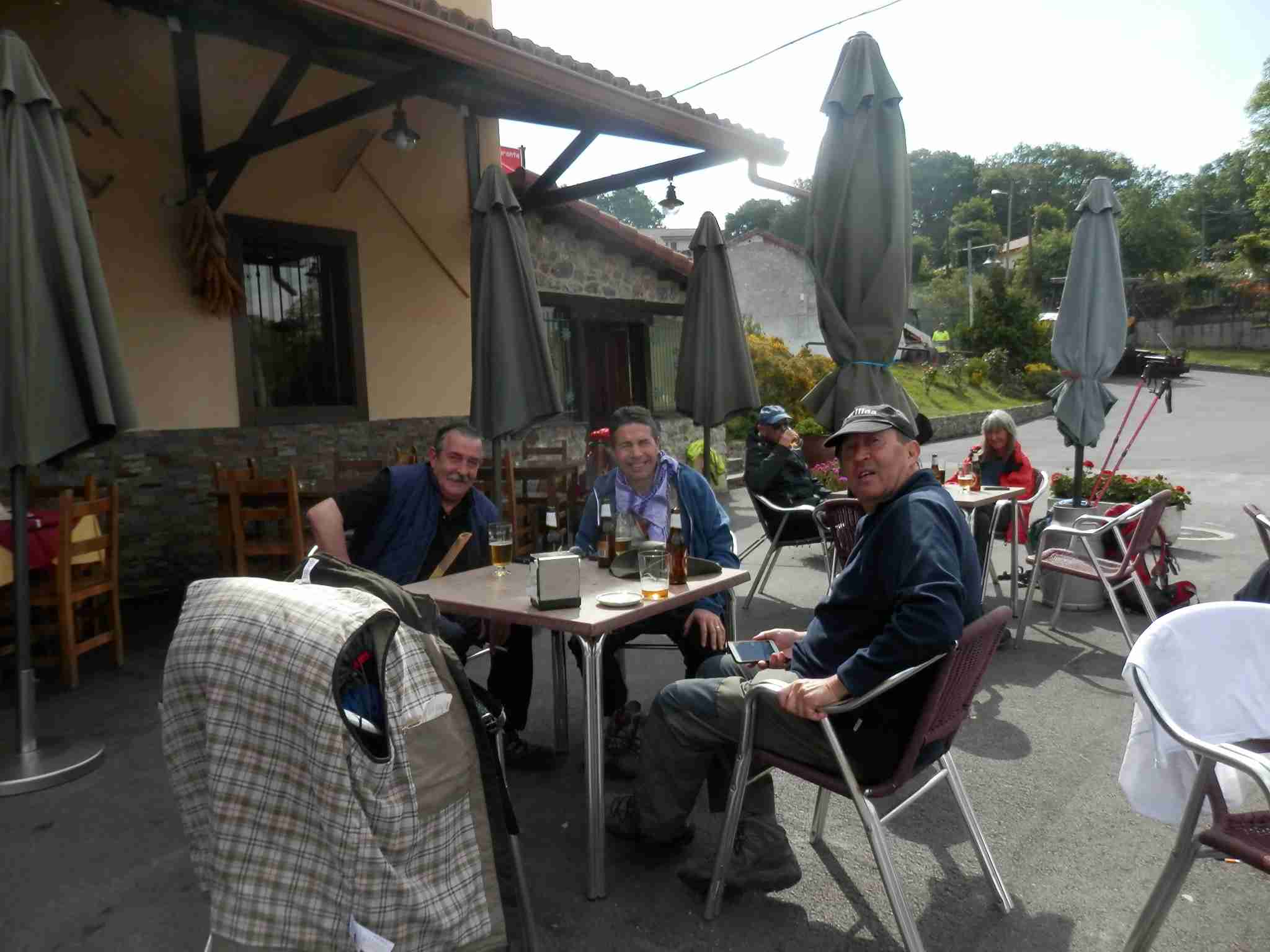 Después, otras cervezas, sentados en la terraza de una cafetería junto a otros muchos peregrinos. La lluvia cada vez es más torrencial por lo que algunos abandonan la terraza y vuelven corriendo al albergue.
