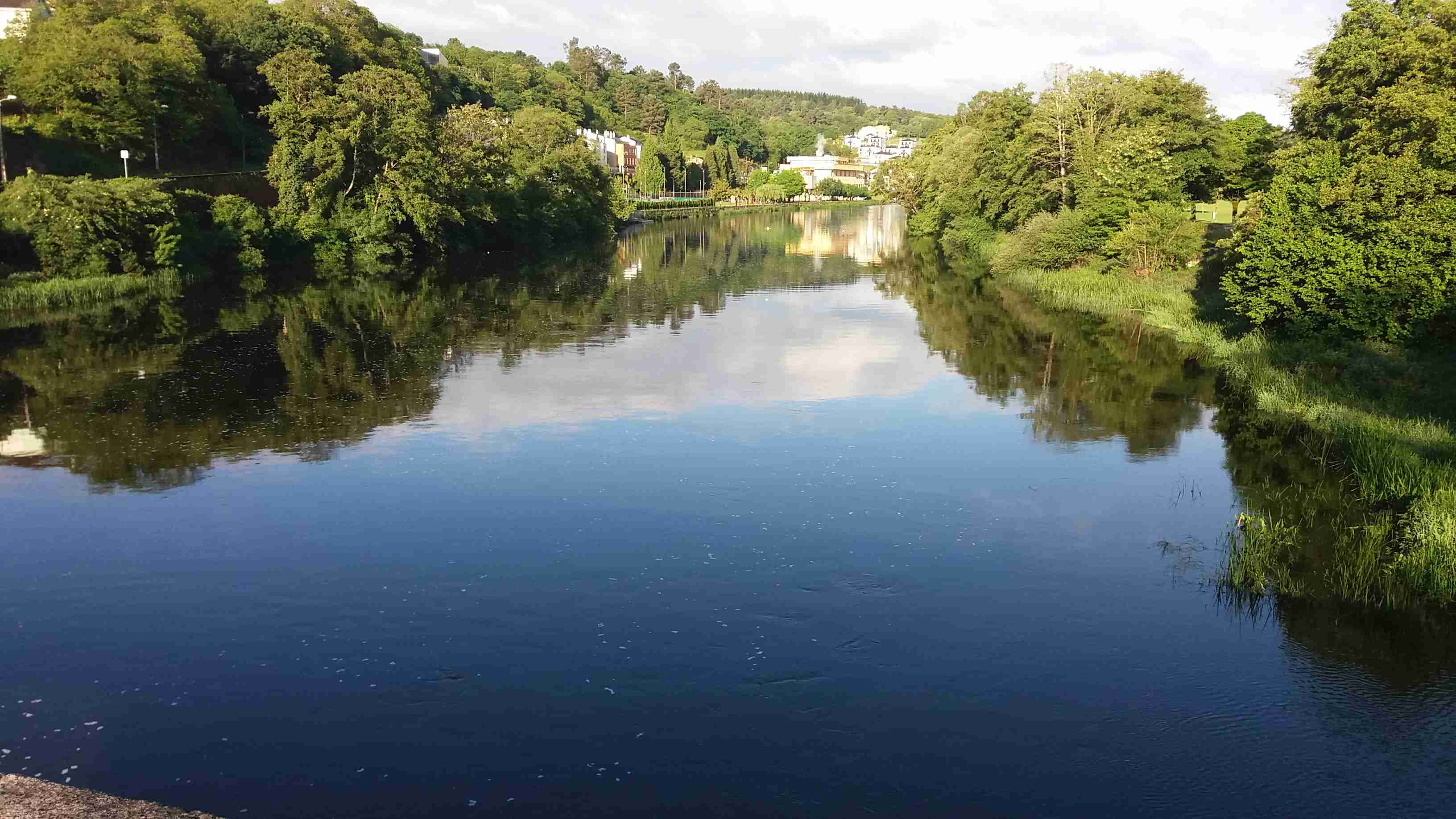 Nos levantamos más tarde que otros días puesto que la etapa hasta San Román da Retorta desde Lugo es bastante corta. Después de desayunar en una cafetería de la Plaza Mayor, callejeamos por la ciudad hasta que por fín encontramos la salida al Camino en fuerte descenso hasta el río Miño.