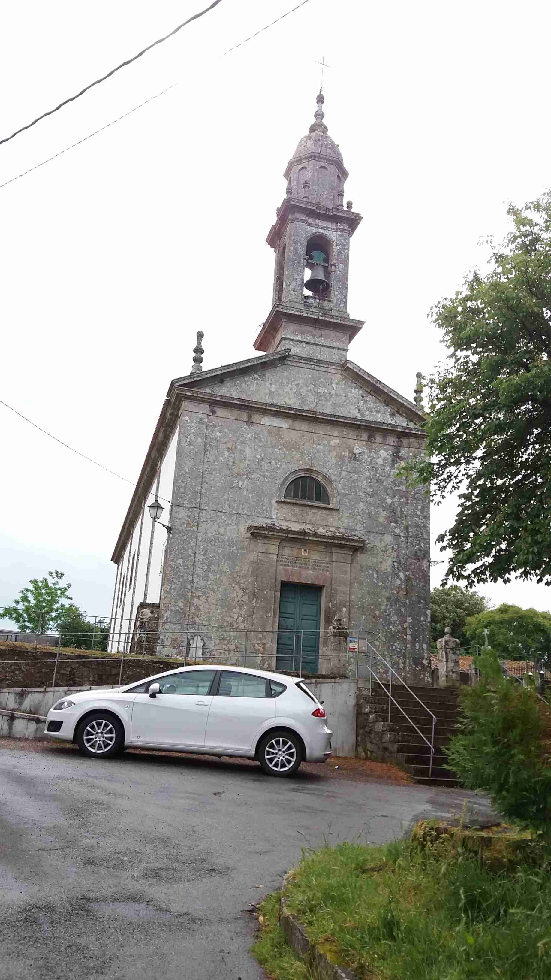 Mientras tomamos unas cervezas observamos con curiosidad frente a nosotros cómo un aldeano engancha un arado en un tractor mientras su perro corretea alrededor de él. Finalizadas las cervezas decidimos continuar el ascenso hacia los edificios de la televisión gallega con intención de comer en San Marcos, muy cerca ya del Monte do Gozo.